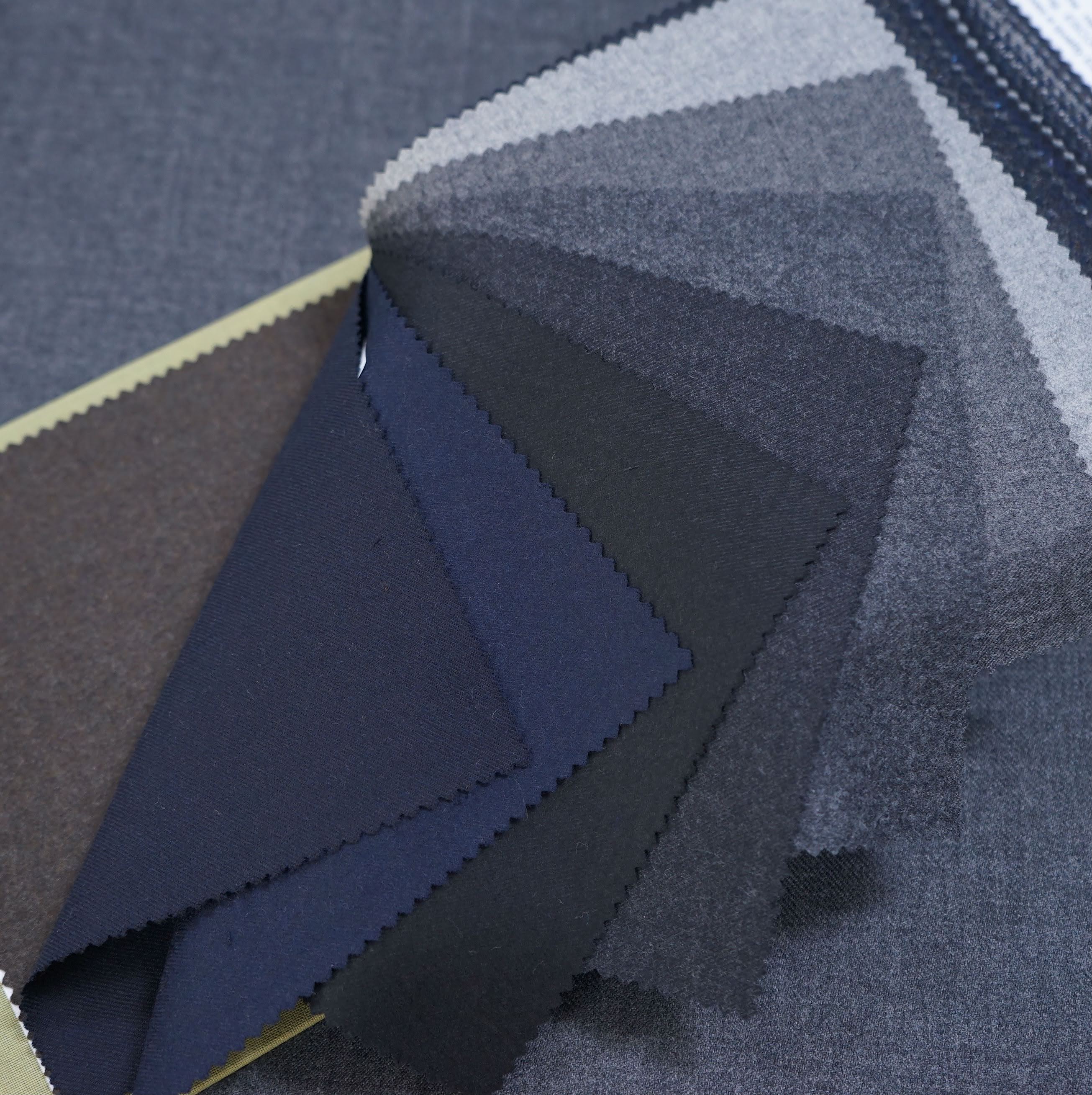 원단은 기본 배색에 충실하면서 F/W 시즌에 적합한 295g의 원단으로 준비했다. 그레이 계열 4종(라이트 그레이, 미드 그레이, 다크 그레이, 차콜 그레이), 네이비 계열 2종(네이비, 다크 네이비), 블랙, 브라운. 왜? 고급 수트는 기본에 충실하면서 포멀하게 입는 게 가장 멋스럽다. 지금까지 많은 수트를 제작해보면서 느낀 바 그렇다. 그래서 이 원단으로 준비한 거다.