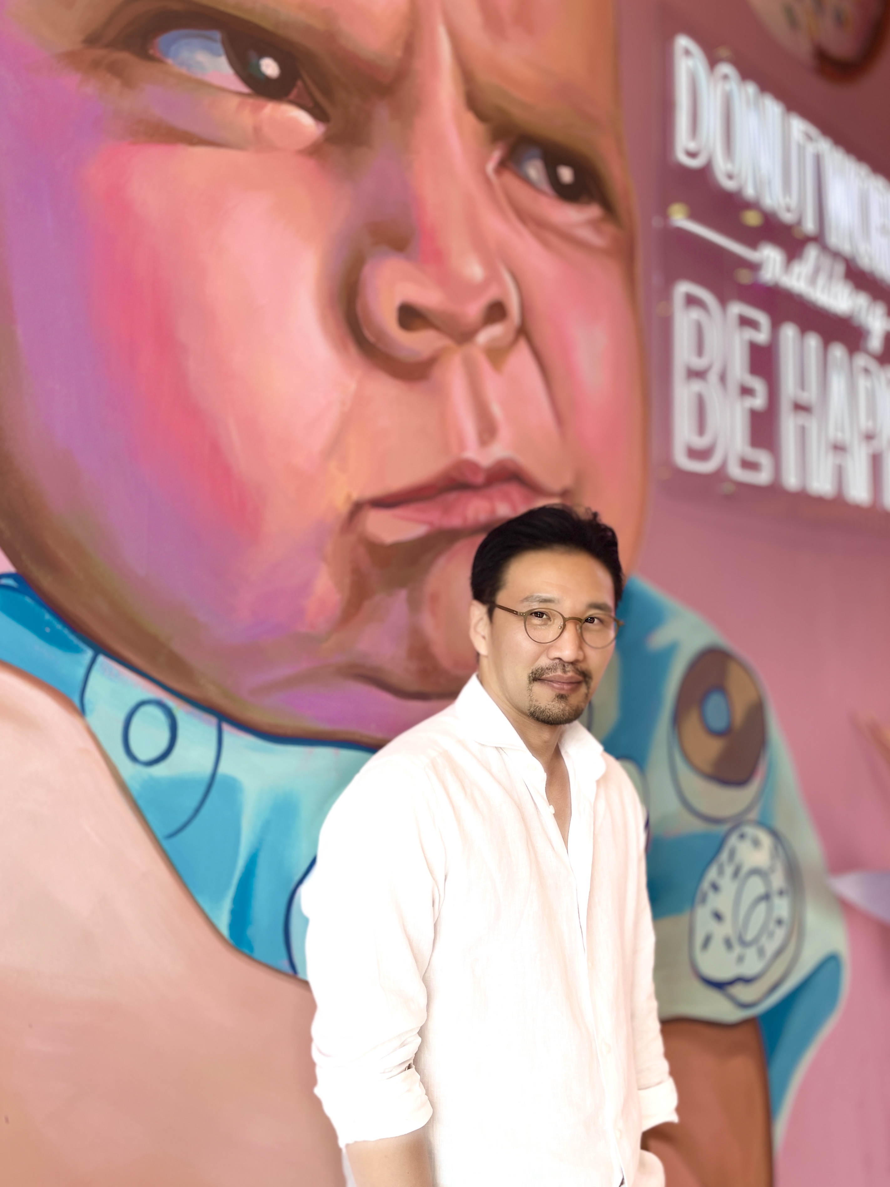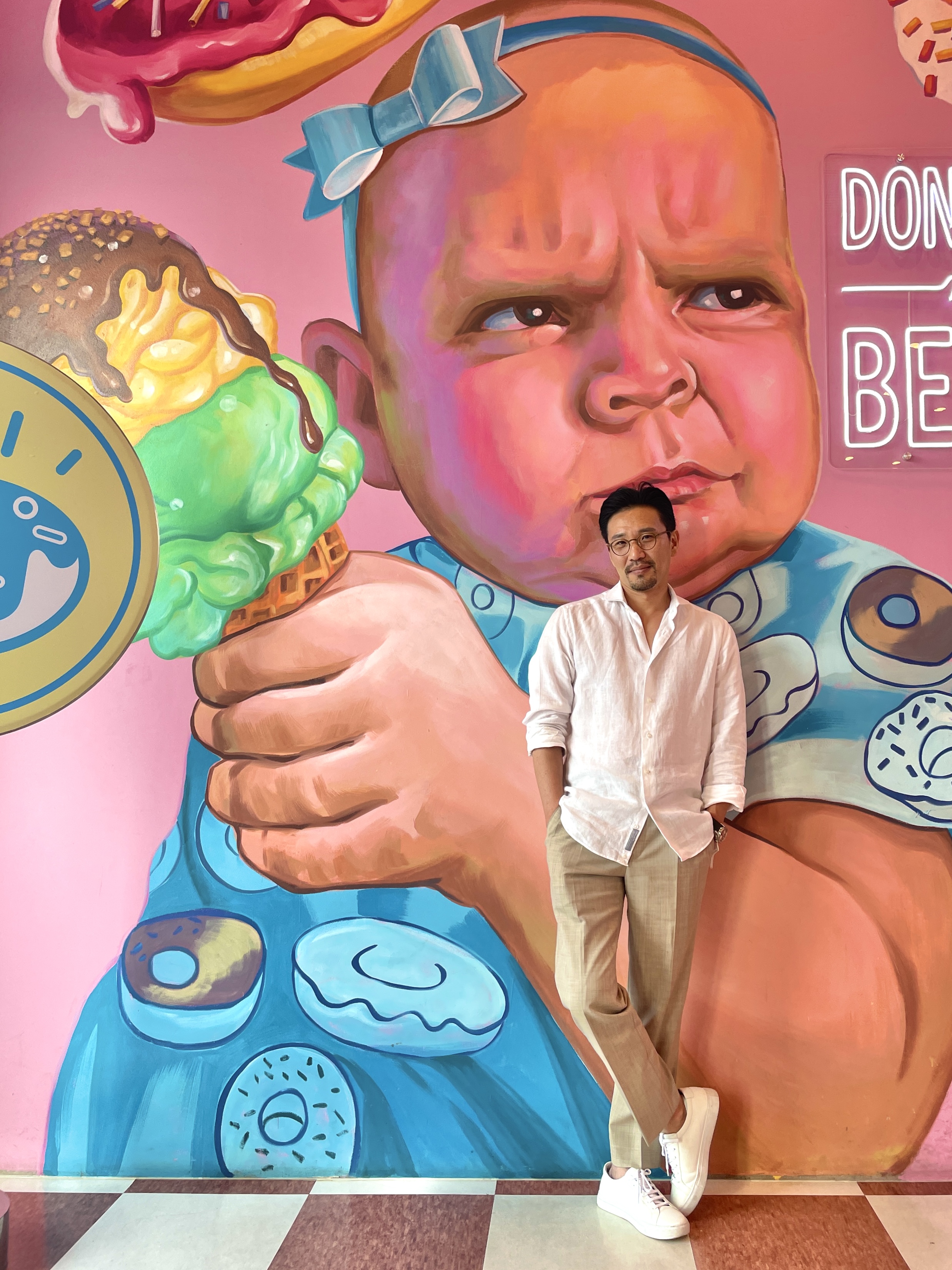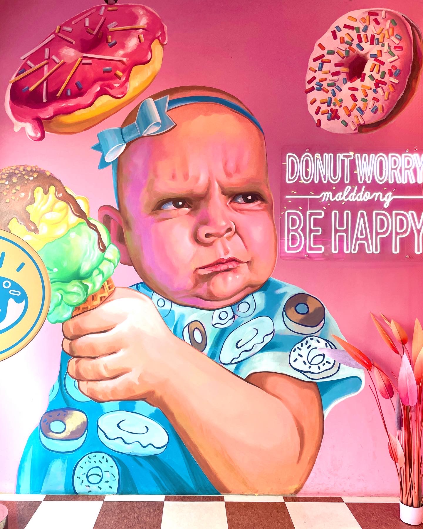 1층 벽면에 애기 사진 앞이 포토존이고, 2층 올라가는 중간 즈음에 도넛 안에 앉아서 찍을 수 있게 되어 있는 포토존 있다. 여기가 가장 사진 찍기 좋은 포토존인 듯.