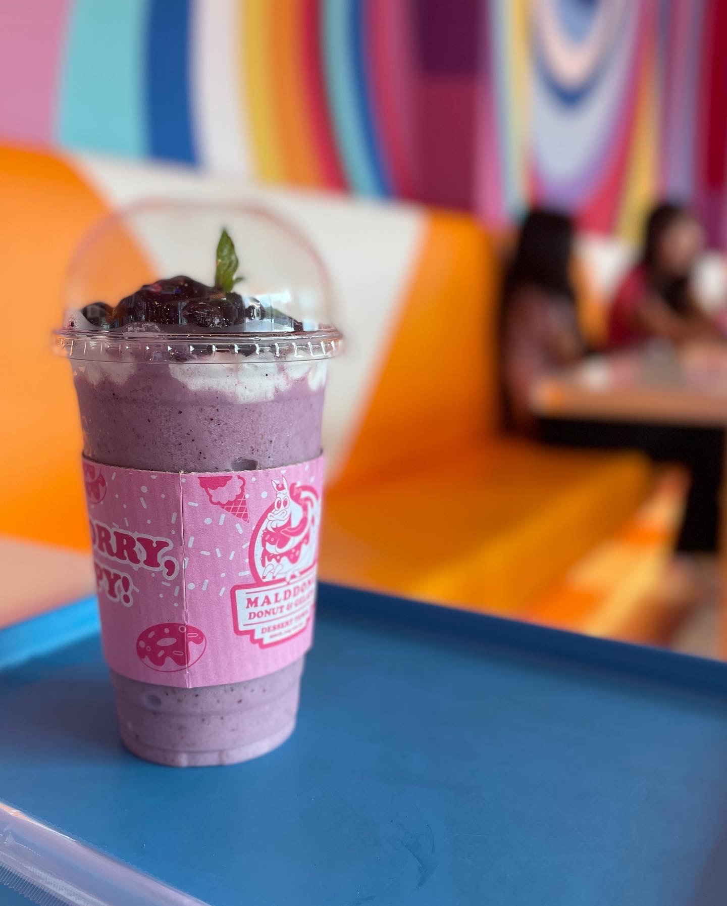 우리가 자리한 곳은 2층. 2층 천정에 LED 사인으로 꾸며놨는데 좌우, 윗 벽면 모두 핑크. 그래도 멀리서도 눈에 확 띄니까 사진 찍기는 좋은 거 같다. 인근에 빵공장 있는데 거기는 베이커리가 맛있는 지는 모르겠다만 사진 찍기는 글쎄. 여튼 내가 시킨 건 블루베리 요거트 스무디. 시원한데 달다. 뭐 난 단 거 좋아해서 계속 흡입. 스무디 위에 올려진 블루베리는 안 먹. 써~ 맛없.