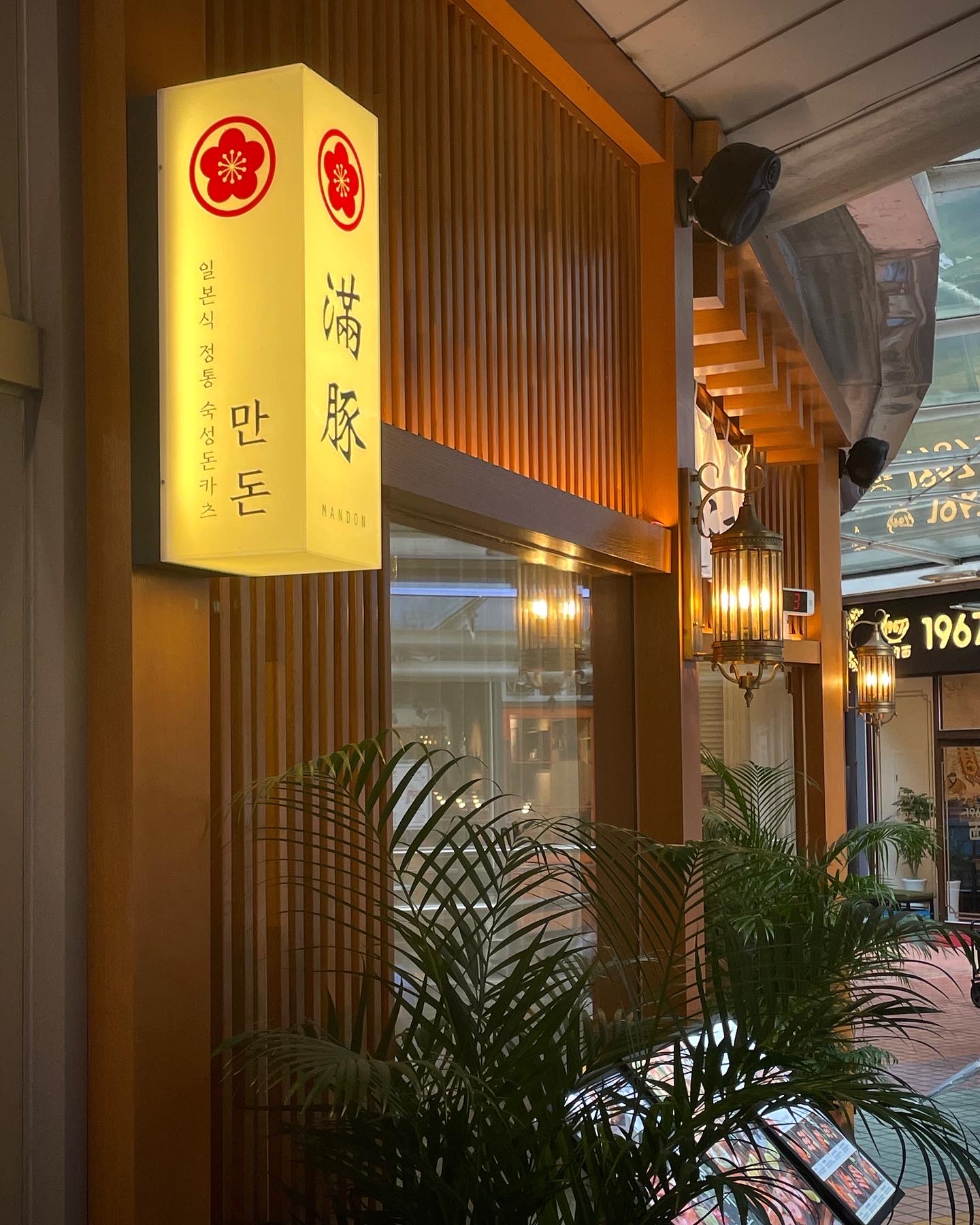 찰 만에 돼지 돈. 그래서 만돈. 겉에서 보면 느낌이 스시집 같다. 내 기억에 여기 스시집이었었나? 국밥집이었었나? 그 이후에 만돈이 들어섰던 걸로 기억하는데 그 인테리어 그대로 쓴 건가? 기억이 잘 나진 않지만 여튼 겉에서 보면 돈까스 집이 아니라 스시집 같다.