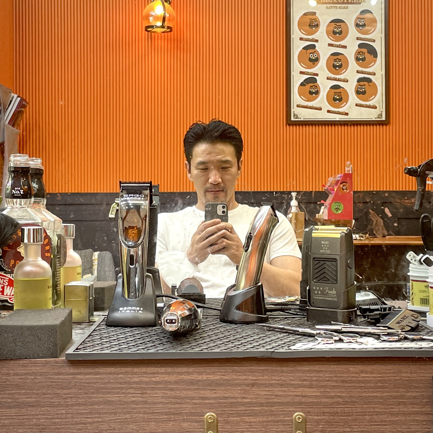 머리하고 난 직후에 찍은 사진이다. 바버샵에서 머리 다 하고 나면 드라이기로 말리고 나서 포마드 발라 빗으로 정돈해주긴 하지. 근데 바버 동생은 내 스타일 알거든 그래서 빗질을 해도 좀 자연스럽게 너무 머리 딱 붙이지 않고 해준다. 그리고 내가 원하는 스타일대로 안 나왔다고 해도 내가 알아서 셋팅하다 보니 부담없이... 첨에나 까다로웠지 그 이후부터는 오히려 더 편해진.