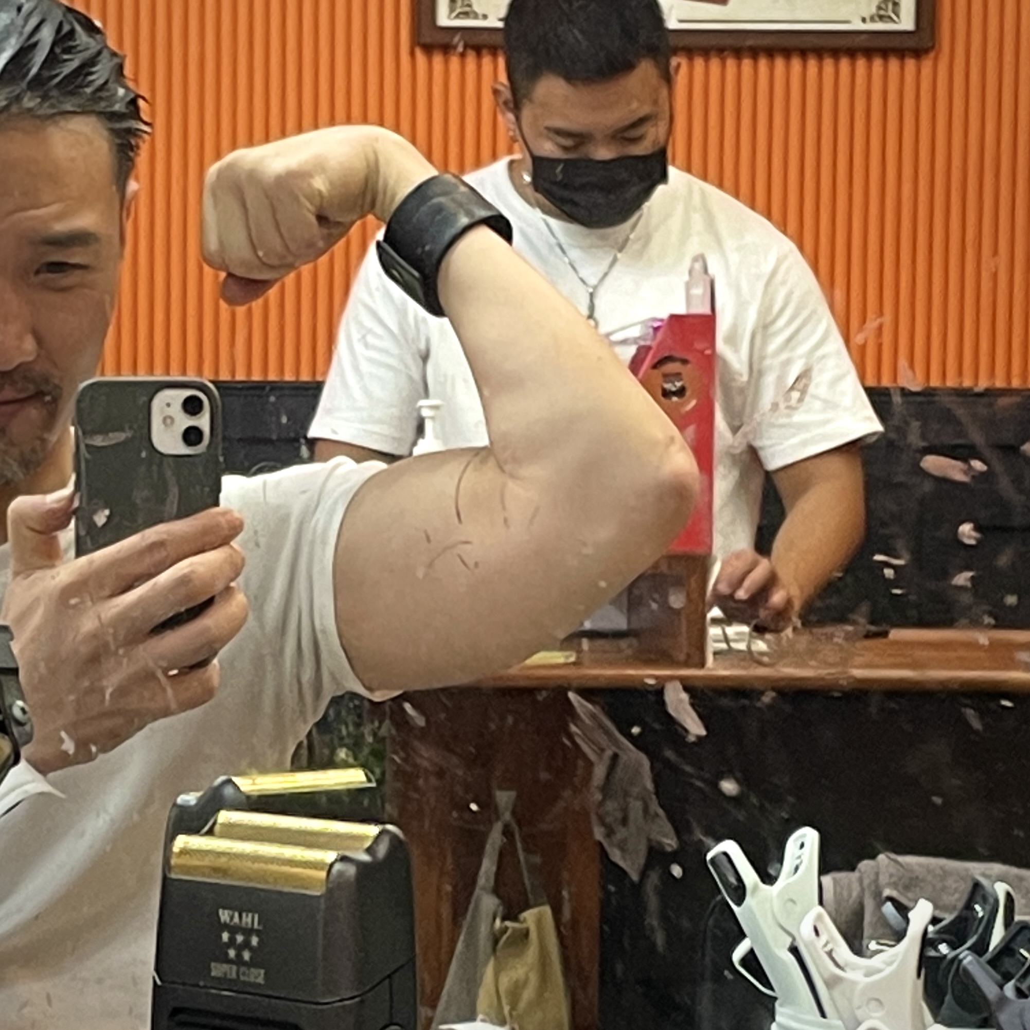 머리하고 난 직후에 찍은 사진이다. 바버샵에서 머리 다 하고 나면 드라이기로 말리고 나서 포마드 발라 빗으로 정돈해주긴 하지. 근데 바버 동생은 내 스타일 알거든 그래서 빗질을 해도 좀 자연스럽게 너무 머리 딱 붙이지 않고 해준다. 그리고 내가 원하는 스타일대로 안 나왔다고 해도 내가 알아서 셋팅하다 보니 부담없이... 첨에나 까다로웠지 그 이후부터는 오히려 더 편해진.