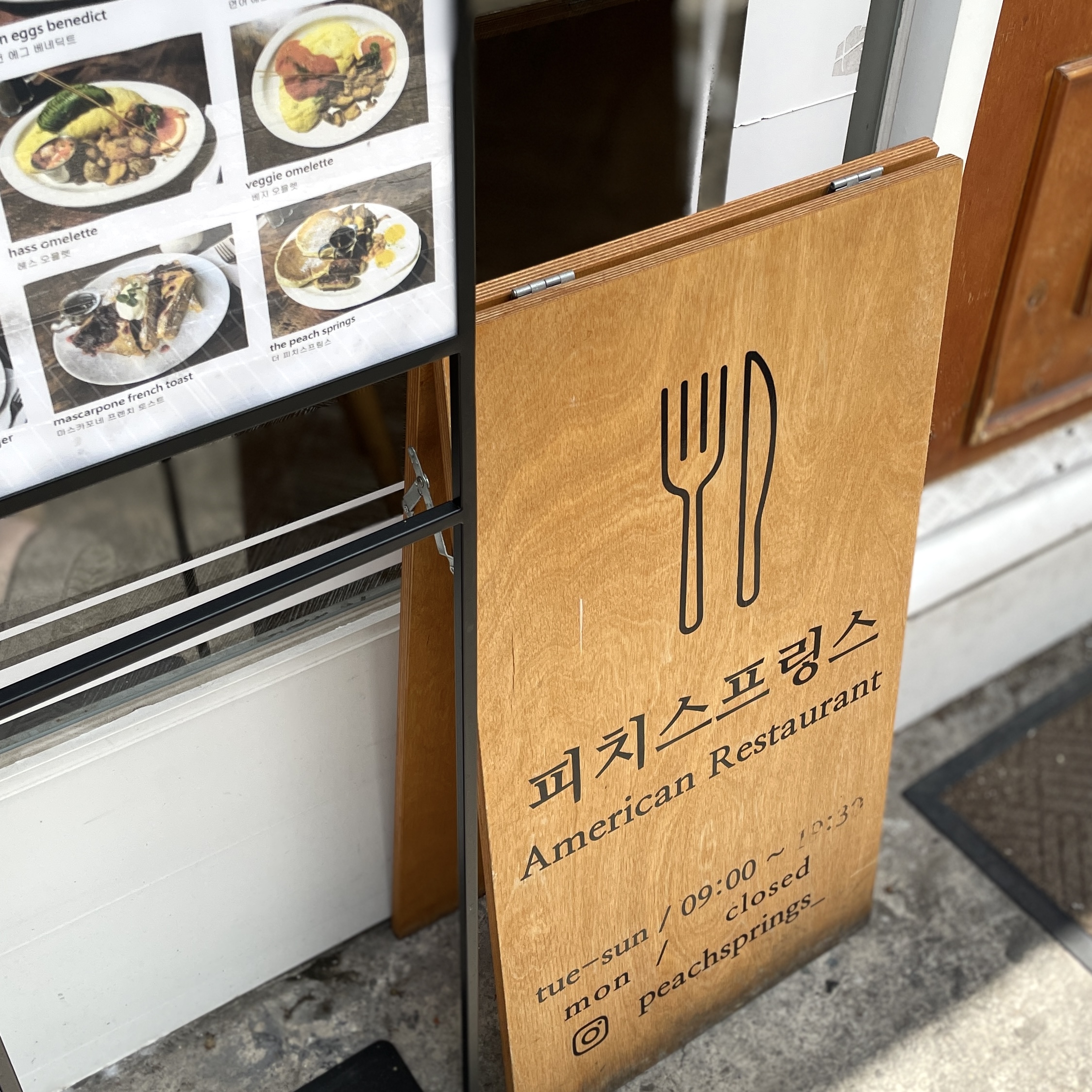 밤리단길? 이런 데가 있는 줄 몰랐다. 근데 가보니 생각보다 웨이팅하는 카페? 음식점? 많고, 가볼 만한 듯 싶더라. 언제부터 이렇게 밤리단길이라고 해서 생겨났는지 모르겠지만, 서울/경기권에서는 무슨 길이 유행인 듯. 여튼 그 중에 브런치 맛보러 피치스프링스에 갔다. 웨이팅 4팀. 일단 예약을 해두고 주차하러 돌아다녔는데, 여기 주차 불편하다. 근데 뭐 내가 사는 일산이라 이런 경우는 좀 흔해서 요령껏 주차했지. 주말에 이 정도였으니 평일에는 그래도 좀 낫겠거니 싶었다.