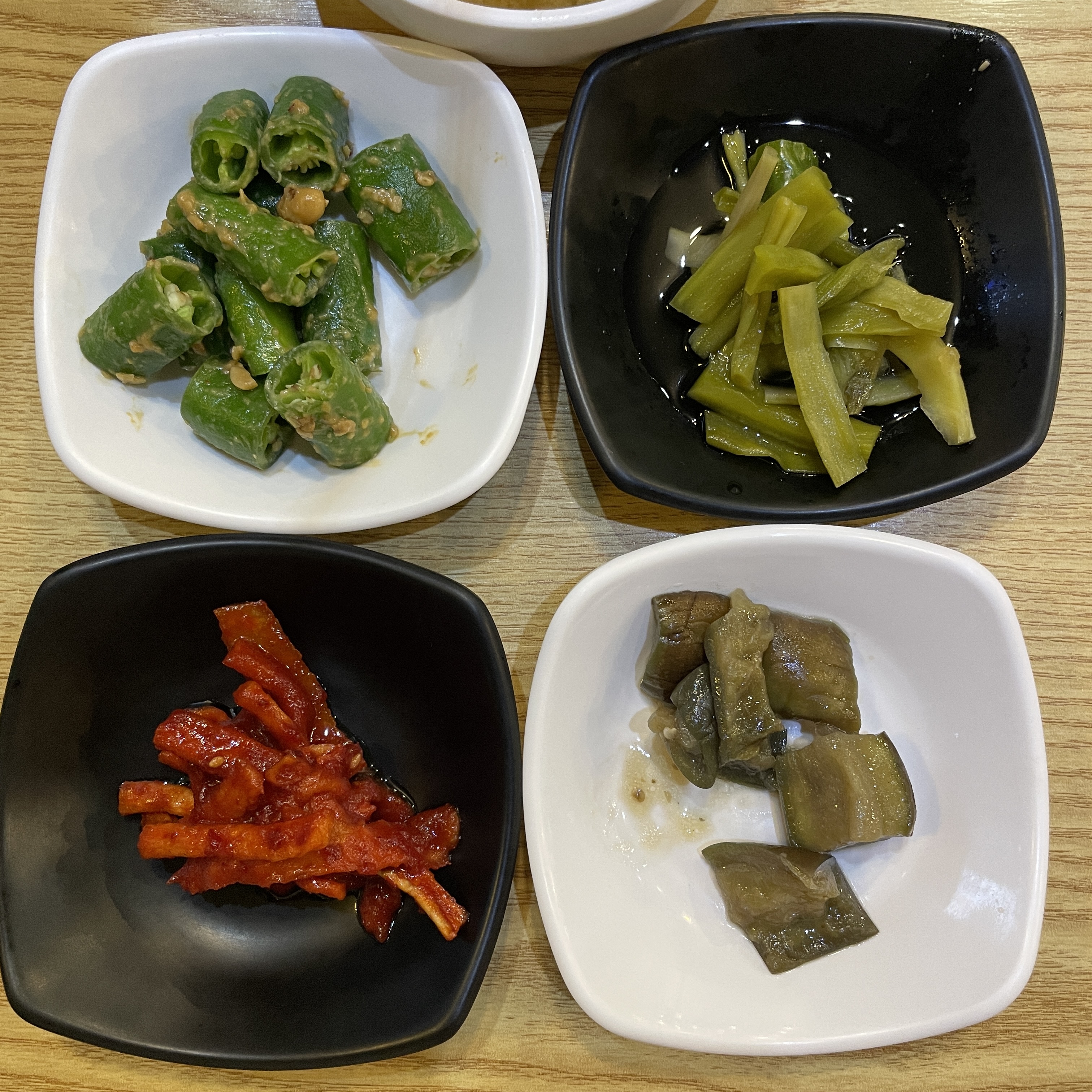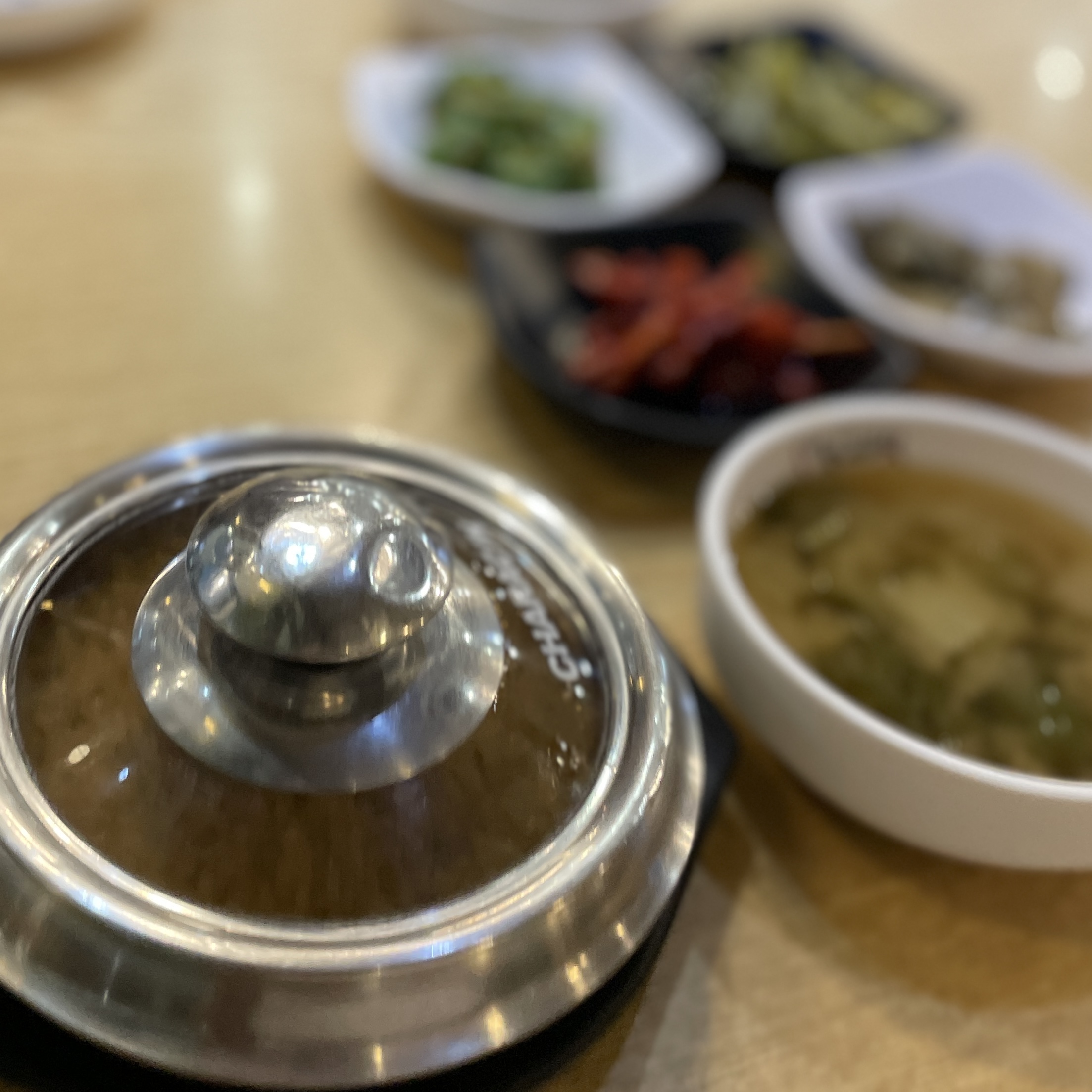 잘 지은 돌솥밥(이거 돌솥밥 맞나 모르겠네)에 기본 반찬. 이 중에서 식감이 아삭한 상추대 강추. 항상 오면 맛있게 먹던 건데 뭔지 몰라서 이번에 물어보니 상추 아래 줄기란다. 한 번 먹어보길. 아삭하고 맛있.