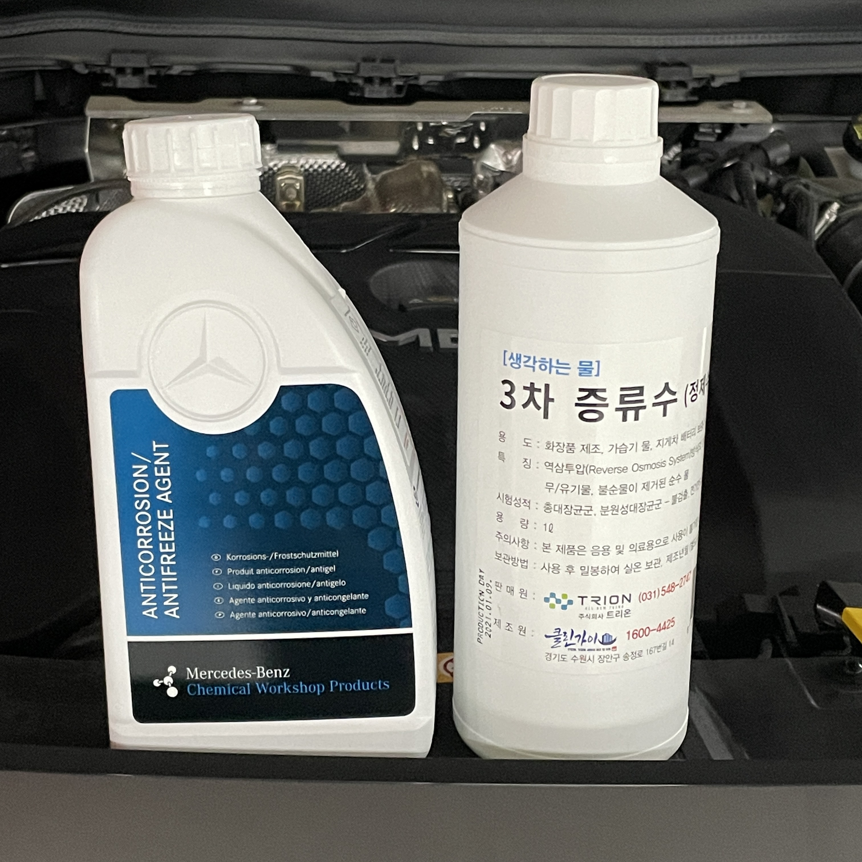 이건 인터넷으로 구매했는데, 부동액과 증류수 1:1 비율로 넣어주면 된다. 부동액도 1리터, 증류수도 1리터. 부동액 살 때 보니까 증류수도 같이 팔길래 3통씩 구매했다. 언제 다 쓸 수 있을까 싶기는 한데, 쓰다 남으면 당근~에 팔면 되지. 이번에 채울 때는 600-700ml 정도 사용한 듯 싶다. 지금 10,000km 좀 안 되는데 보충해줬는데, 앞으로 언제 또 경고등 들어오는지 봐야지.