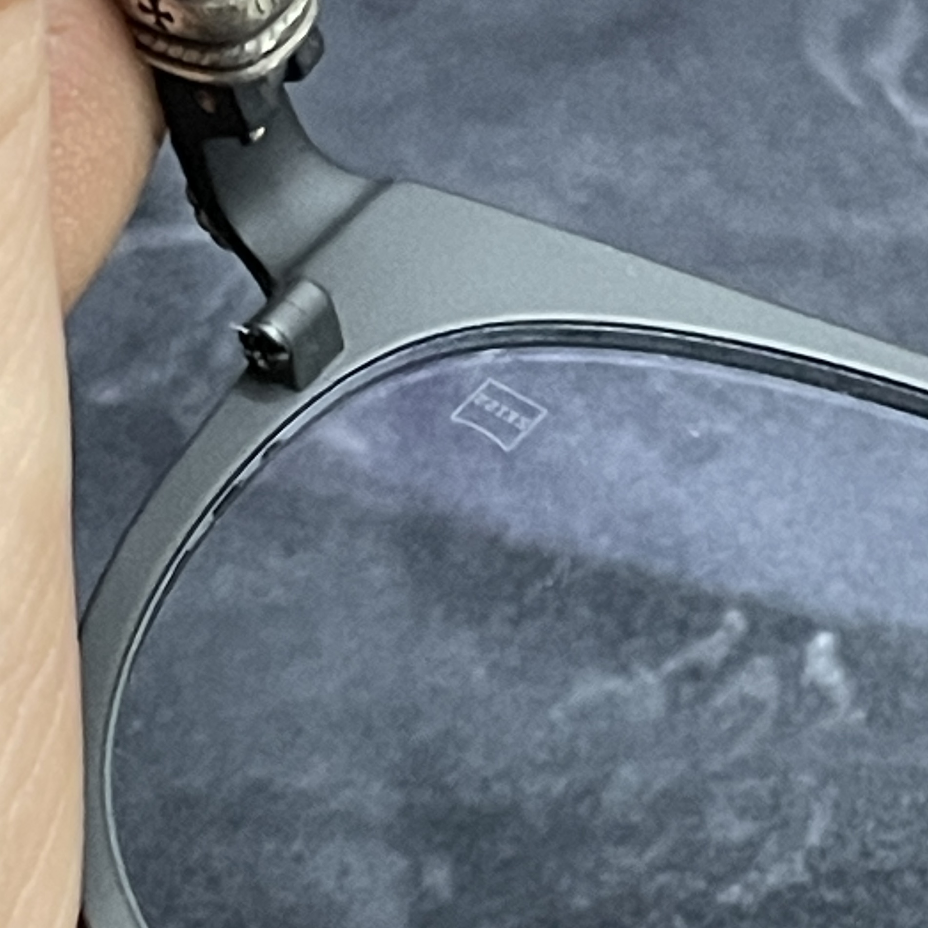 안경 닦다가 보니까 음각 마크가 있더라. 있는 줄도 몰랐는데. 이런 거 좋다. 왜냐면 칼 자이스 렌즈라 해놓고 다른 저렴한 렌즈로 제작하면 그거 일반인이 어떻게 알 수 있겠냐고. 맞춤 양복에서도 그런 경우 많다. 보여준 원단이란 실제 제작한 원단이 다를 수 있단 얘기. 그래서 원단 브랜드 자켓 안쪽에 달고, 바지는 셀비지 확인하고 하는 거지.