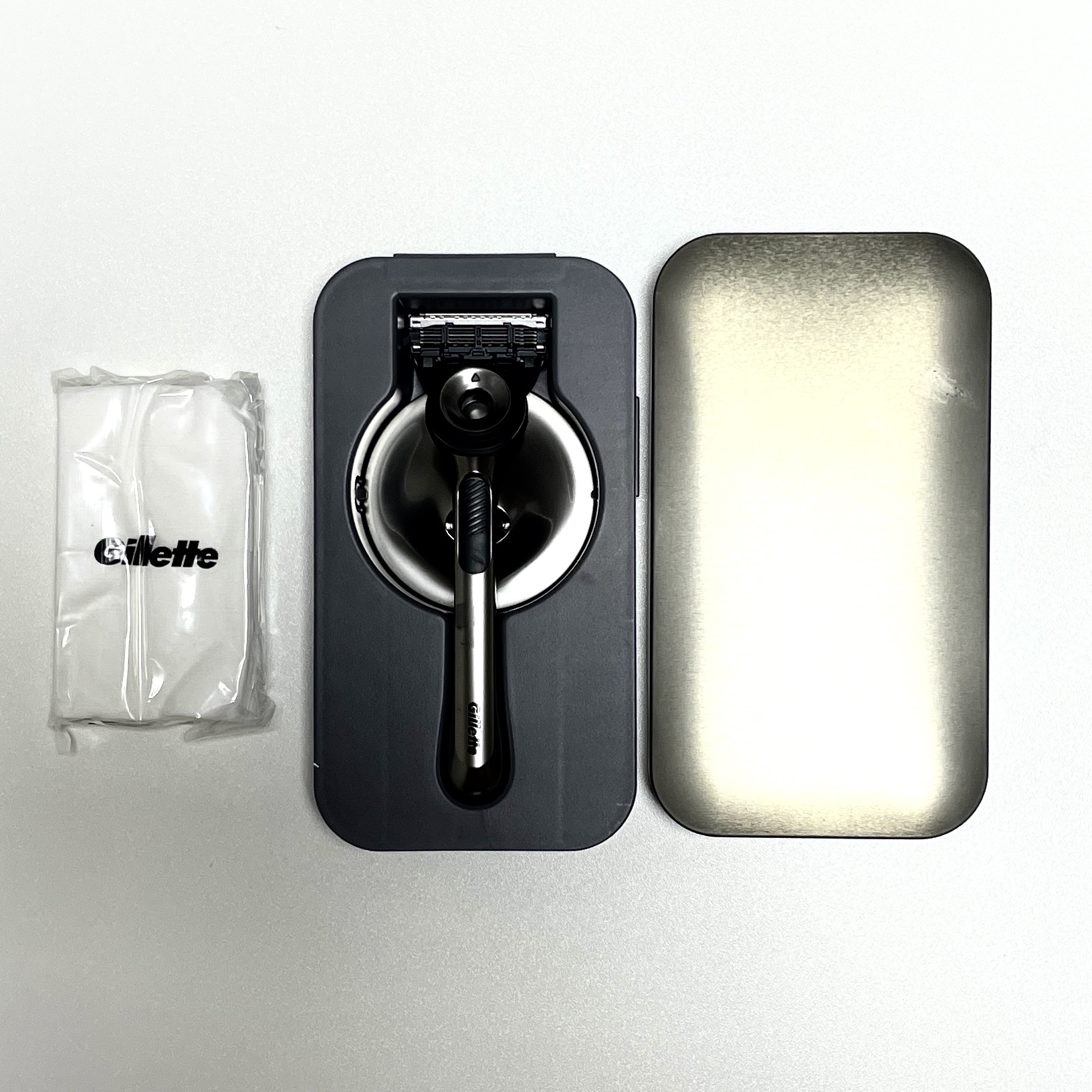 여행 다닐 때 사용할 만한 틴케이스도 고급스럽고 괜찮. 다만 한 번 찌그러지면 복구하긴 쉽지 않을 듯. 이 중에 가장 맘에 드는 건, 면도기를 세워둘 수 있는 스탠드다. 면도기를 꽂아서 세워둘 수 있게 되어 있어서 면도기 눕혀놓지 않아도 되고 좋더라고. 디자인도 맘에 들고. 이번에 이거 산 가장 큰 이유를 하나만 꼽으라면 스탠드 때문이 아닌가 싶다.