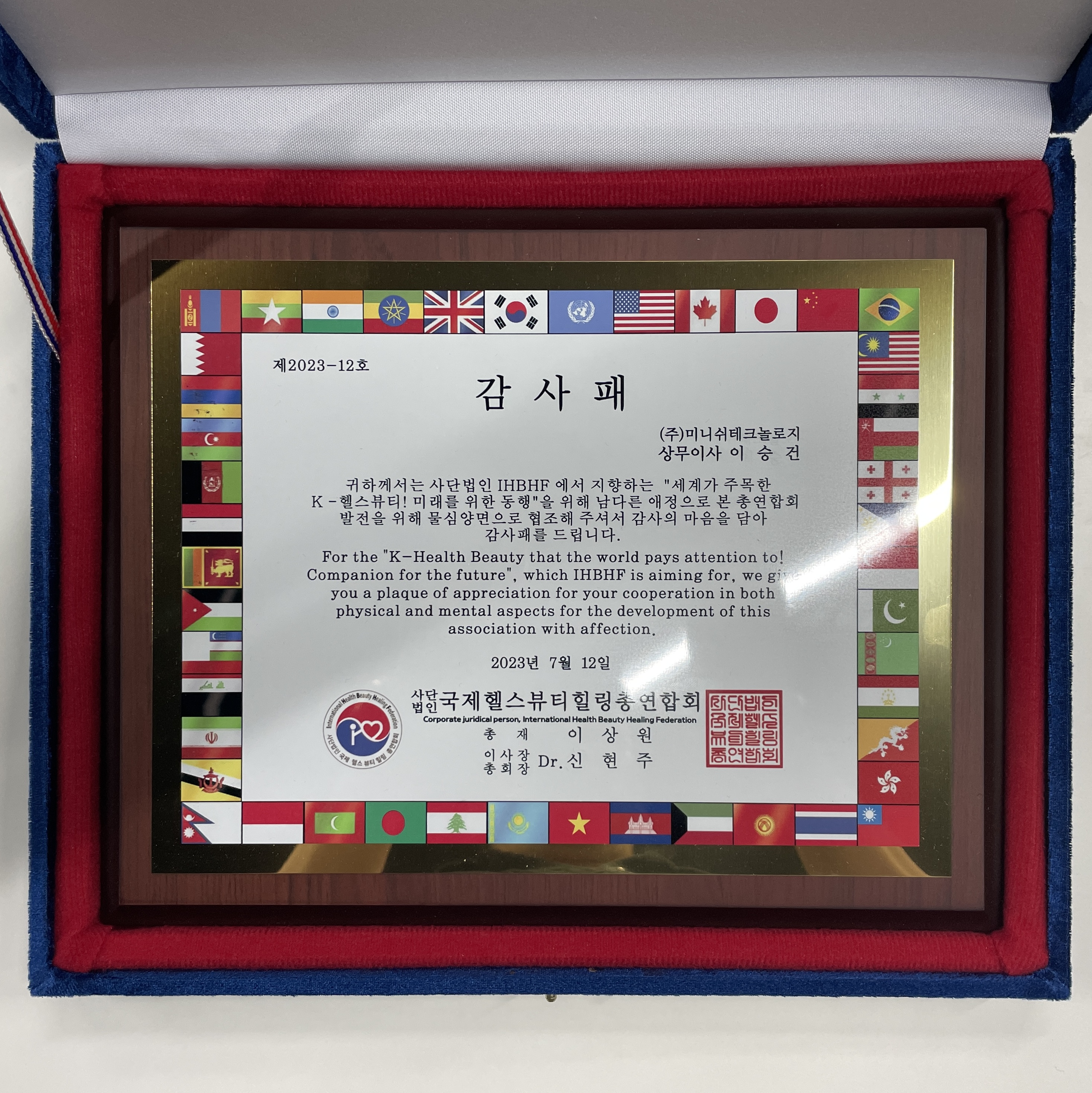 내가 한 게 뭐 있다고 감사패를 받는지. 대표님 감사패랑 똑같이 내 것도 있네. 그냥 제작해주신 거겠지. (사)국제헬스뷰티힐링총연합회(이름 졸라 길다. 왜냐면 연합회 즉 여러 협회들이 모인 총연합회라) 총재님이랑 친해서 감사패 하나 제작해주신 건가 보다. 나름 도움 드릴 거 드리고 그렇게 했을 뿐인데.