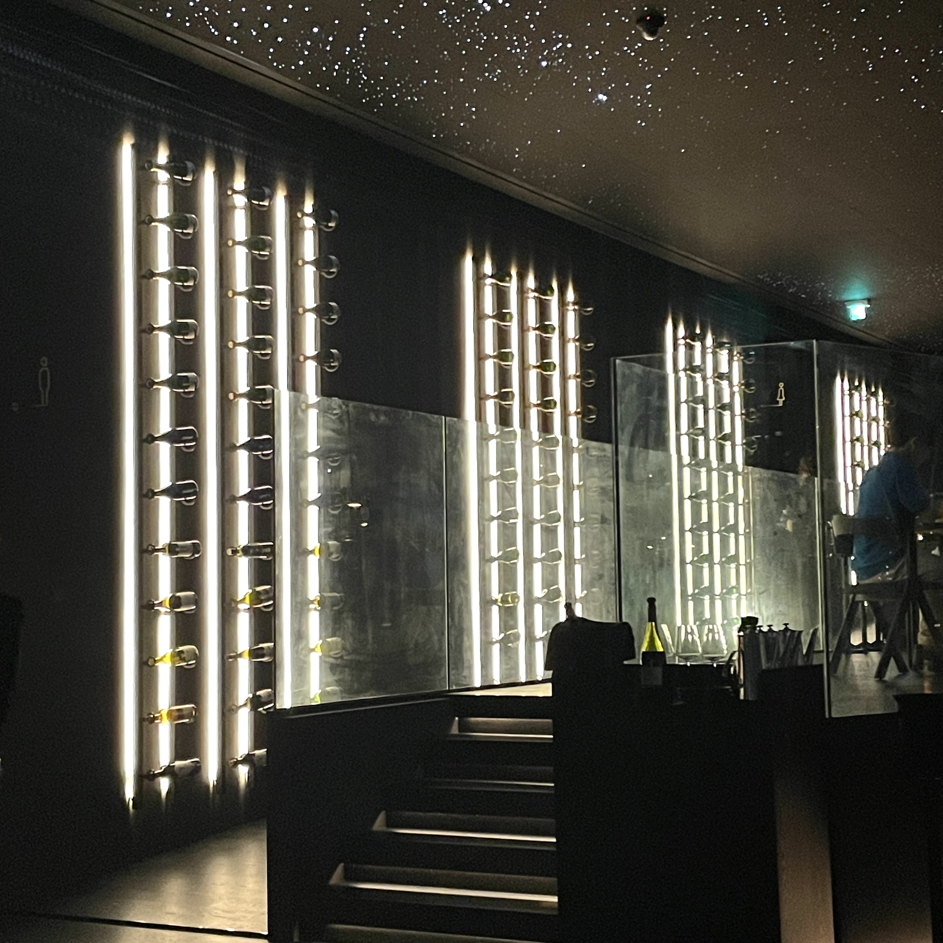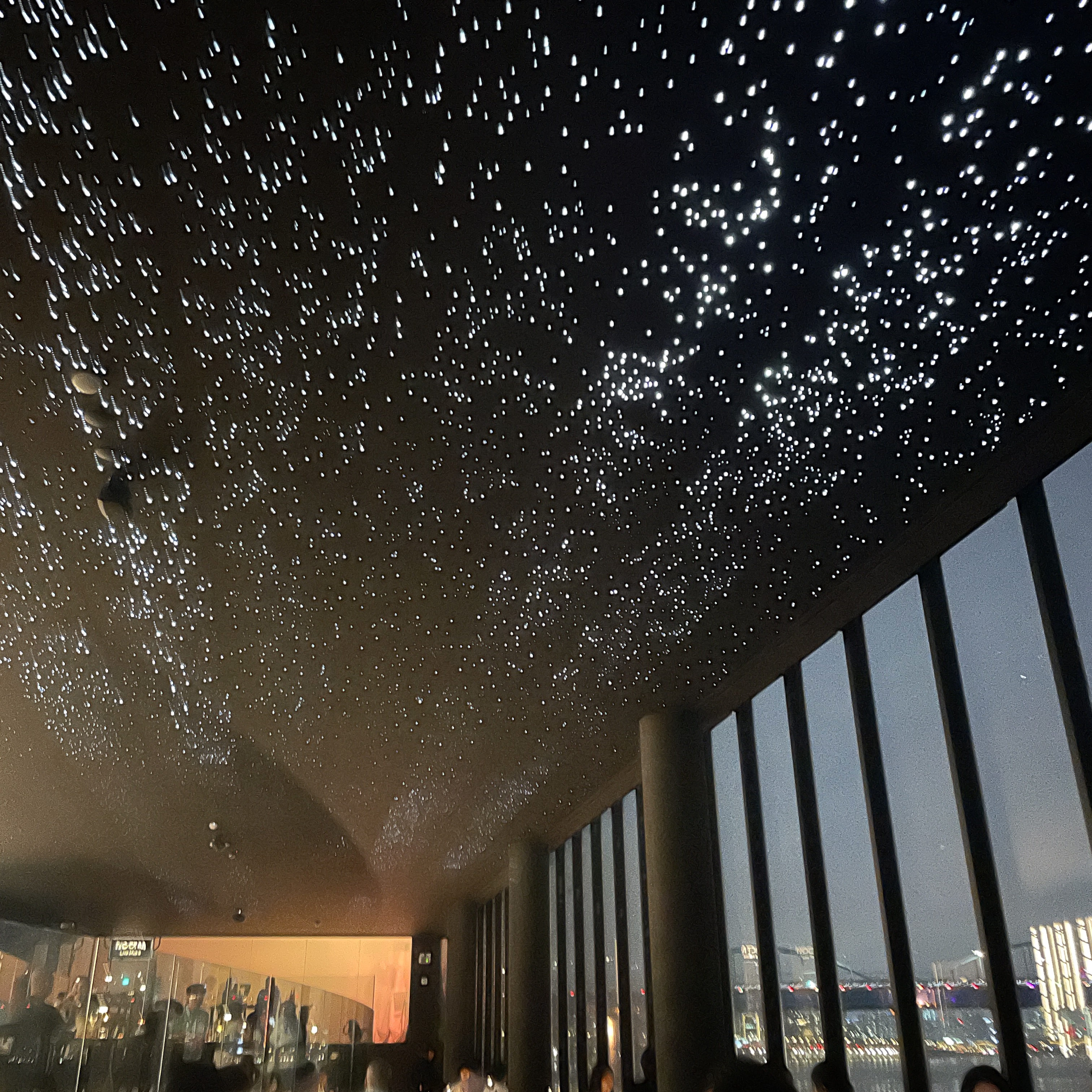 해 떨어지고 나면 천장에 광섬유(맞나?) 조명이 마치 은하수의 별과 같이 설치되어 있어서 분위기 내기 좋다. 이래서 예약하기가 힘들었던 게 아닌가 싶다. 노을지는 한강뷰와 함께 저녁을 먹고 나면 어두워지면서 광섬유가 빛나고~ 그래서 이 시간대 오는 사람들은 대부분 연인이었던 듯.