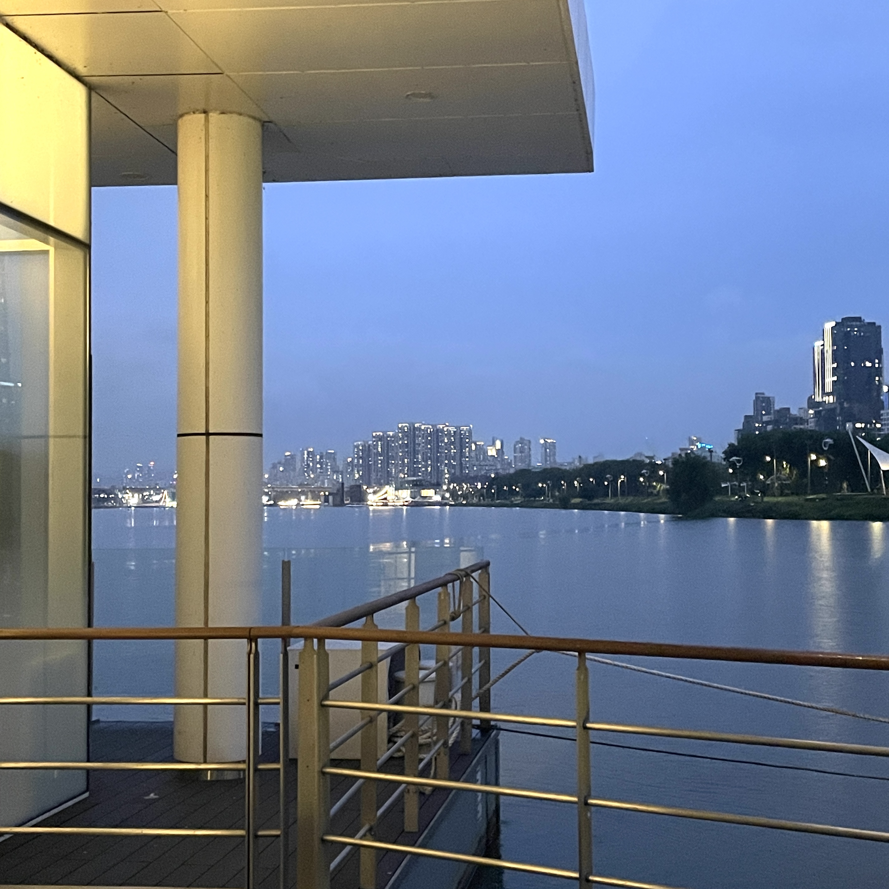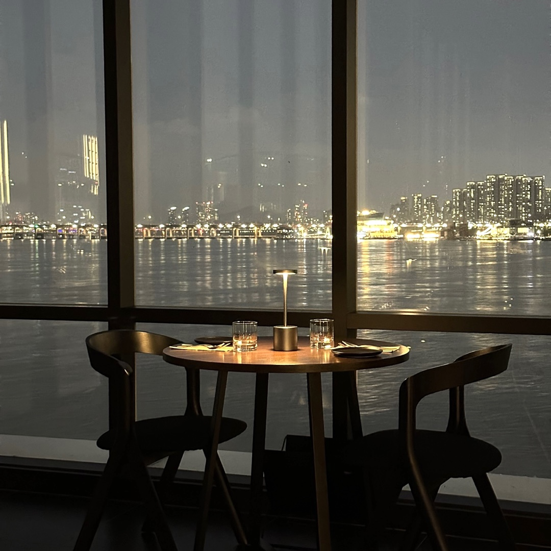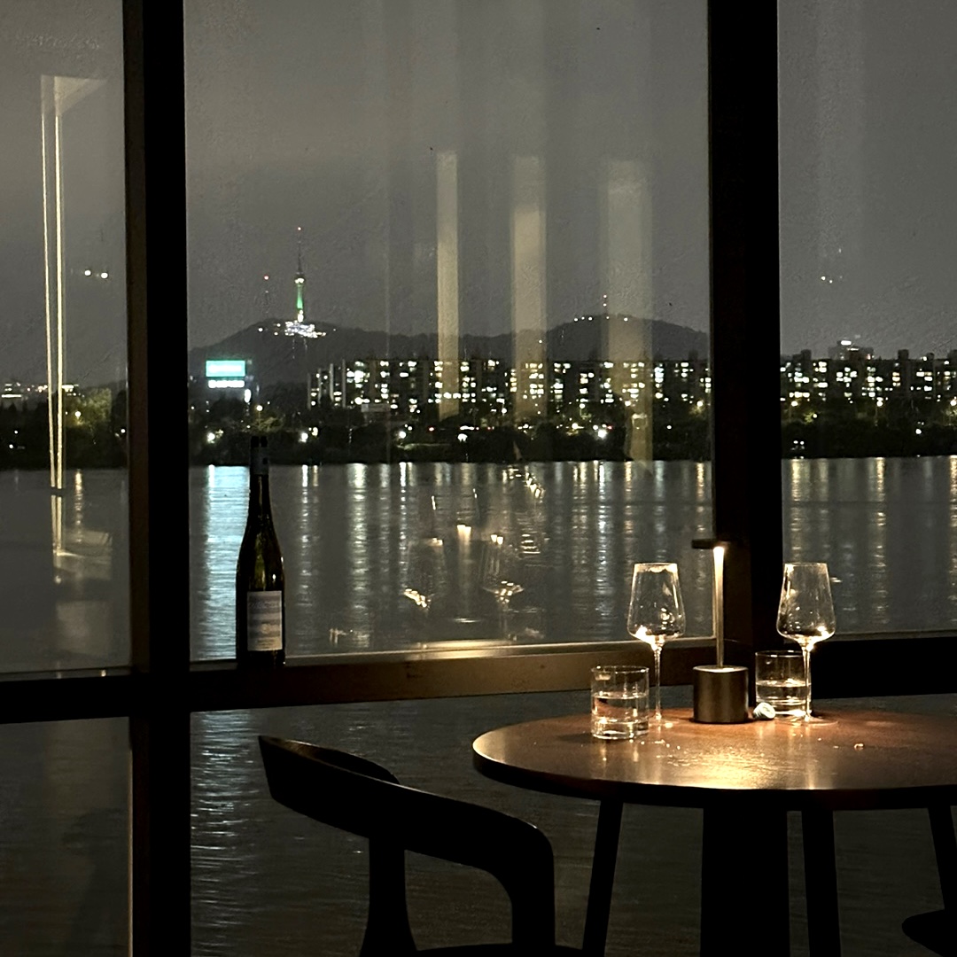 여기는 통으로 녹트를 위한 공간이다 보니 층고가 높아. 게다가 한강쪽이 통유리로 되어 있어서 노을을 보기 좋고, 탁트여서 좋고. 아쉽게도 내가 간 날은 비가 내리는 바람에 노을을 맛볼 수는 없어서 다소 아쉬운 감이 있었지만, 예약하기 어려운데 자리 나면 바로 예약하느라 날씨 따지고 할 여유가 없었다. 그렇다고 해서 창가 자리에 앉은 건 아니지만 그건 별로 아쉬움 없네.