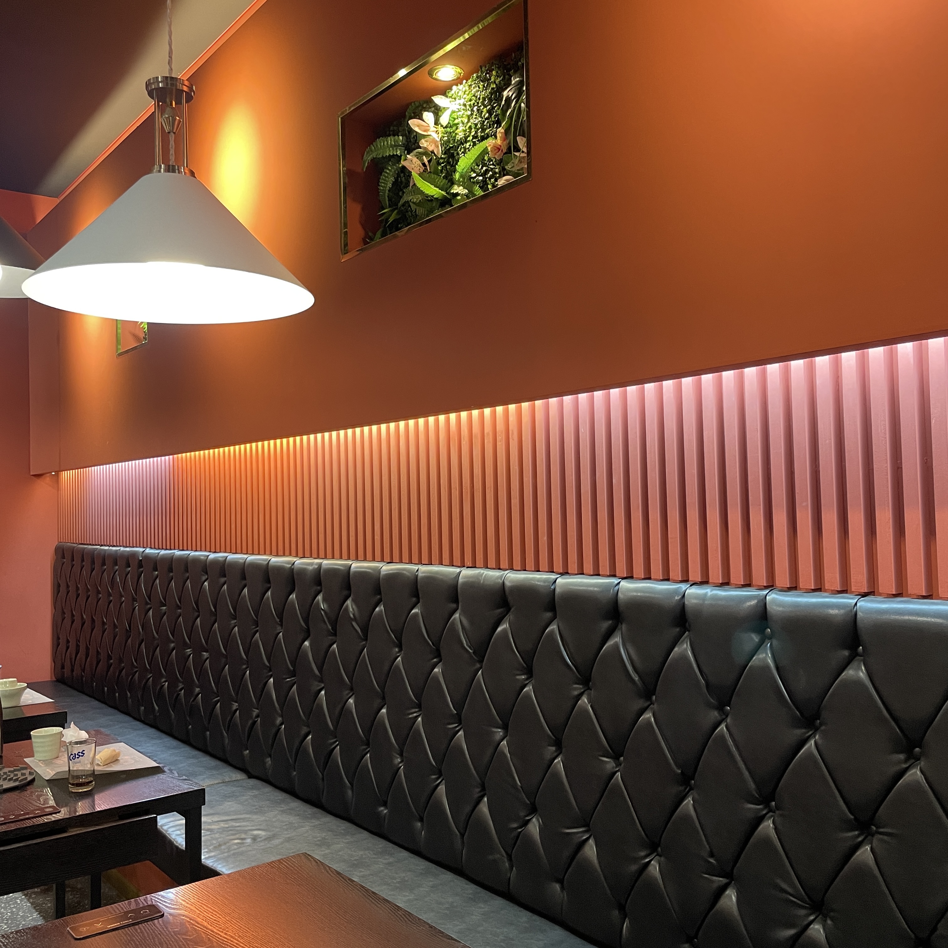 원래 닭목살 먹으러 가려고 했는데, 지나가다가 새로운 음식점이 생겨서 들렀다. 스키야키랑 샤브샤브 전문점인데, 프랜차이즈인 듯. 근데 요즈음에는 메뉴도 메뉴지만 인테리어가 눈길을 끌어야 발길을 옮기게 만드는 듯 싶다. 로고도 그렇고 인테리어도 그렇고 모던한 느낌. 메인 칼라를 무슨 색깔이라고 하지. 맘에 들어.