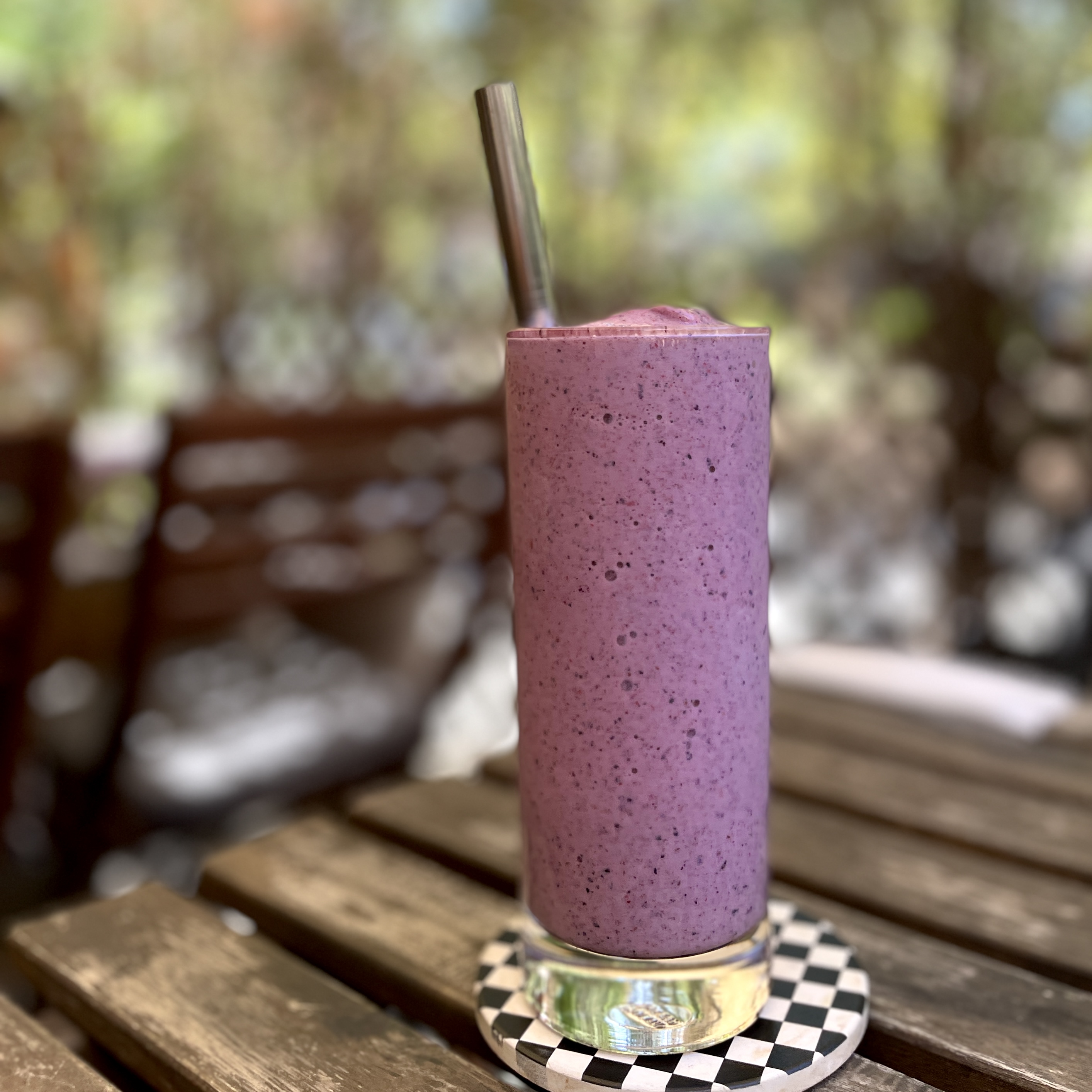 일단 자리는 야외에 자리잡았다. 나무가 마치 벽인 것처럼 되어 있으니 외부 시선을 차단 시킬 수 있고 그런 부분은 좋더라. 가을의 선선한 날씨라 안보다는 밖에서 음식 먹기 좋았던 날씨. 그래도 햇볕이 아직은 뜨거운데, 나무로 가려줘서 좋았고. 주문한 메뉴 중에 제일 먼저 나온 건 옥스퍼드 스무디. 딸기와 블루베리 스무디다. 맛나. 빨대가 스테인리드 스틸인 게 특이.