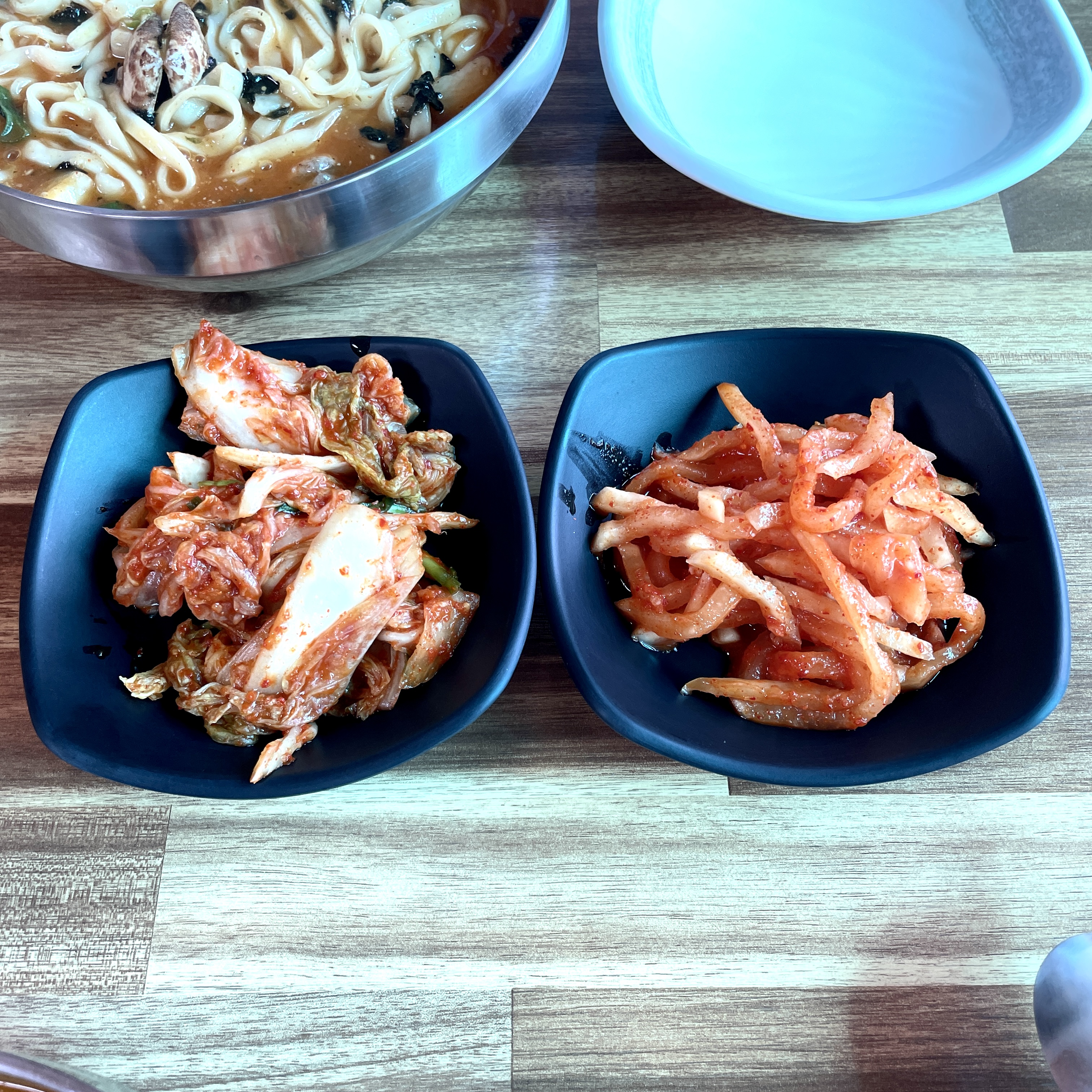 고성에서부터 맛보고 싶었던 장칼국수를 양양에서야 맛보게 되네. 장칼국수가 거기서 거기라고 생각이 들겠지만 인터넷 상으로 사진을 보다 보면 왠지 모르게 땡기는 데가 있거든. 왠지 모르게 맛있어보이는. 뭐 실제로 그런지는 모르겠지만 우리가 간 장가네칼국수는 맛있었다. 걸죽한 국물도 좋았고, 김치도 맛있었고, 무채는 내 입맛에는 시더라. 나이 드니까 이상하게 입맛이 변해서 신 거 못 먹겠더라고. 남들은 별로 안 시다고 하는데 나만 신 경우가 요즈음 들어서 꽤 많아진 듯.