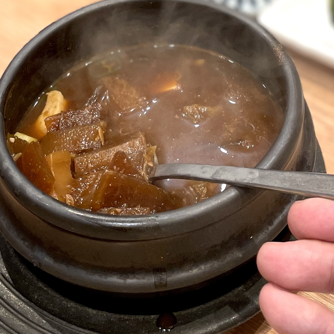 된장찌개도 지대로다. 사진의 빛깔만 봐도 느껴지듯이. 우리가 일반 고기집에서 시키면 나오는 묽은 된장찌개랑 달라. 맛있어.