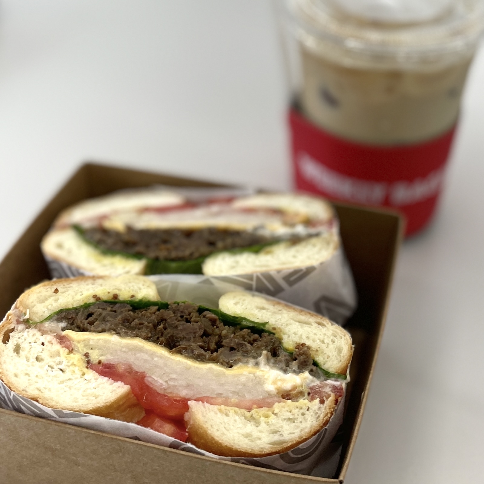 내가 시킨 건 로스트 비프 & 치즈 샌드위치. 그리고 뭐겠어? 아이스 바닐라 라떼. 여기도 카라멜 마끼아또는 없더라. 점심을 베이글로 때울 순 없고 해서 샌드위치 중에서 시킨 건데, 샌드위치 시키면 즉석해서 만들어준다. 근데 샌드위치 종류들을 죽 살펴보니 그래도 내가 먹을 만한 건(고기 들어간 거) 로스트 비프 & 치즈 샌드위치라 이거 시켰다.