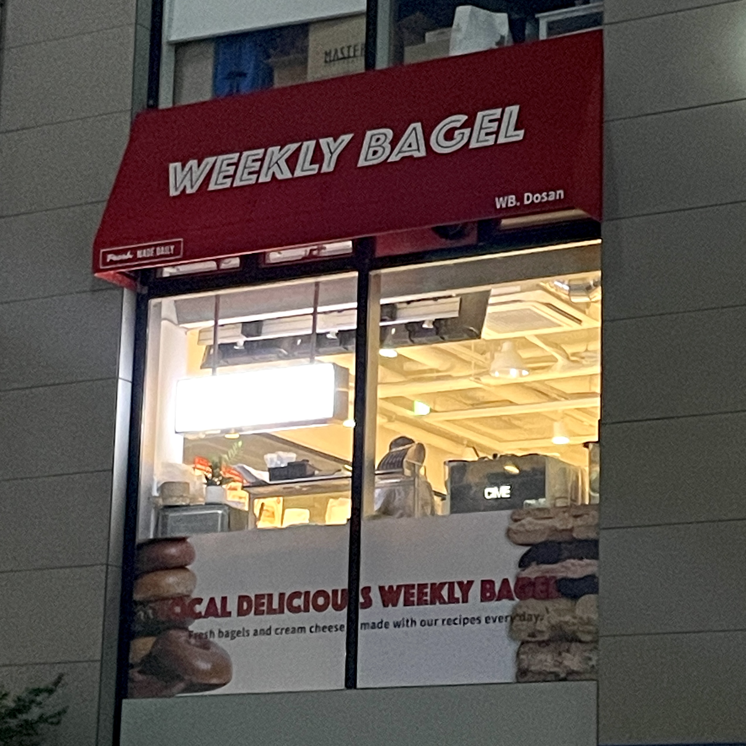 위클리 베이글. 여기 몇 군데 있더라. 프랜차이즈란 얘긴데, 얼마 없는 거 보니 그렇게 유명하진 않은 모양이다. 여기 내가 회사 다닐 때, 건물 1층에 있는데, 도산공원사거리점은 1층은 1층인데 1.5층이라고 해야할 듯. 좀 애매해. 게다가 뭔가 구분이 되어 있다기 보다는 건물 내 매점과 같은 느낌이라 전혀 몰랐다. 그냥 점심 때 한 번 이용해봤는데 맛은 있더라.