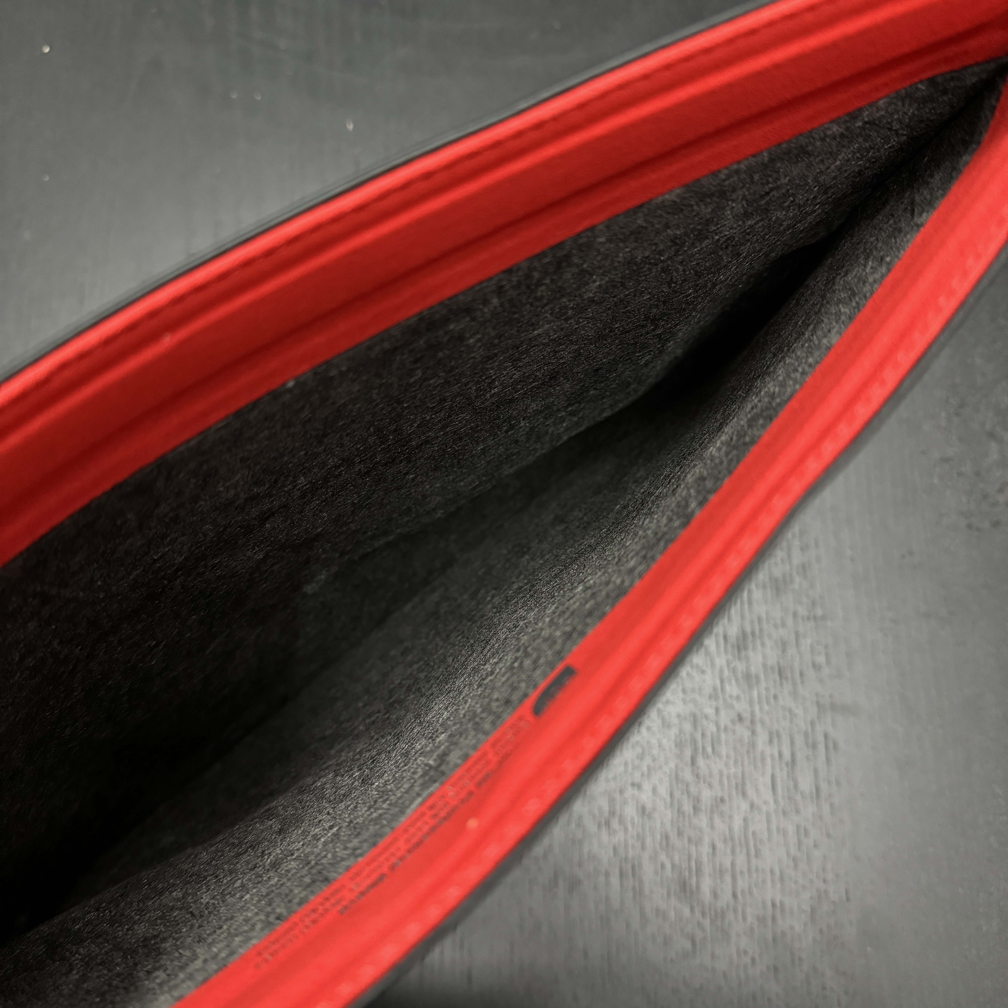 입술 부분에도 빨간색. 검정색에 빨간색 포인트 나쁘지 않다. 강렬한 느낌도 주고. 내 씽크패드 Z13 Gen 2가 13인치지만 13인치 슬리브라 해서 혹시나 빡빡해지지 않을까 싶어서 사이즈 다 보고 구매한 건데, 여유 있다. 그리고 윗부분은 자석으로 랩탑 넣고서 착 달라붙게 되어 있고. 이 파우치는 맘에 드네.