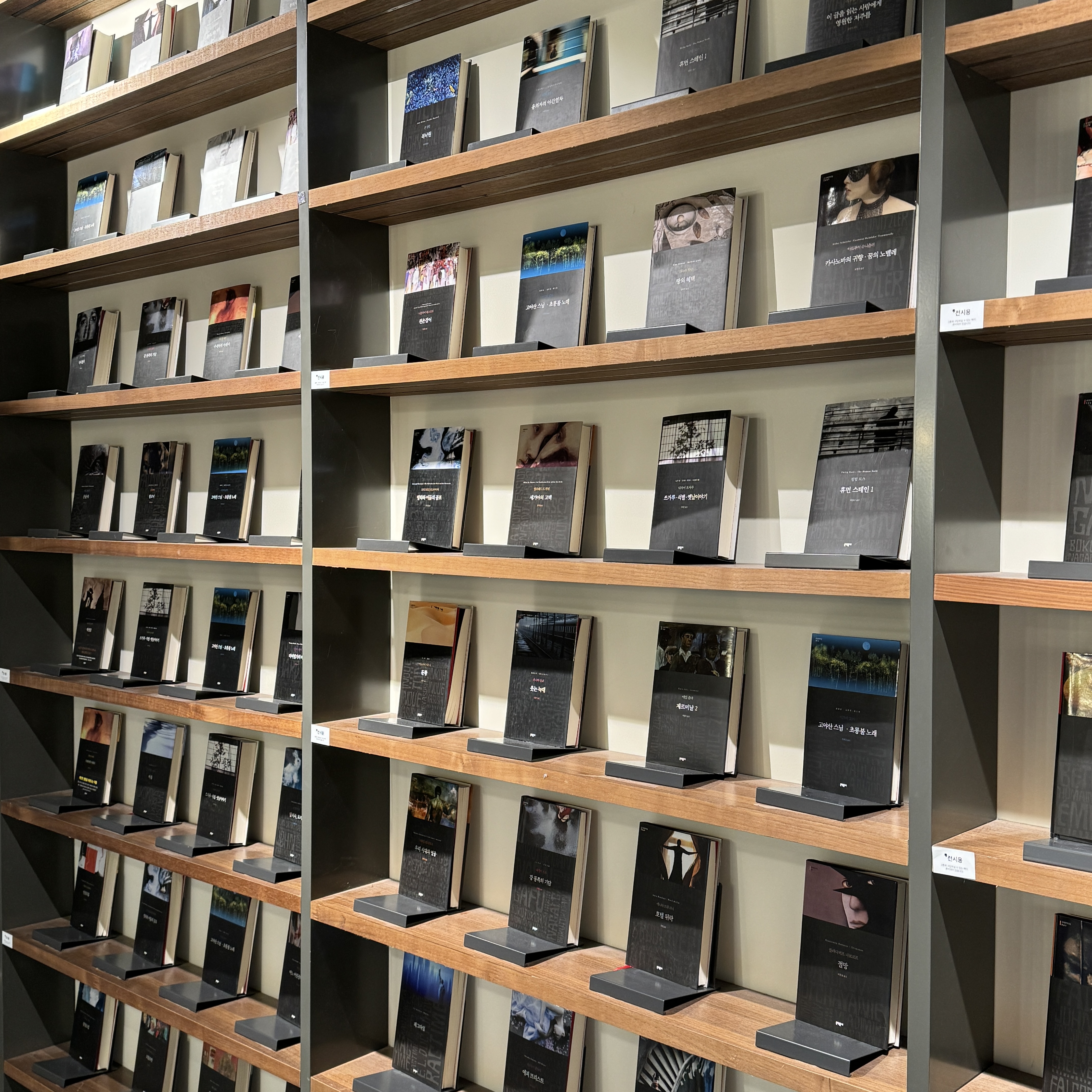 계단 벽에 있는 책들. 이거 그냥 들고 가서 읽을 수 있나? 예전에 홍대 카페꼼마에서는 거기에 있는 책 50% 할인 가격으로 살 수도 있었는데, 아직도 그 시스템은 여전한 건지 모르겠다. 게다가 이렇게 책을 전시만 해두면 무슨 의미일까. 그 내용을 읽어야 의미가 있지. 근데 이렇게 비치되어 있는 거 보면 가져가서 읽진 못하는 게 아닌가 싶기도 하고. 모르겠다. 안 물어봐서. 그래도 문학동네 시리즈 책인지 몰라도 표지가 깔맞춤되어 있으니 디스플레이용으로는 괜찮았던 듯. 문제는 나는 문학과는 거리가 멀어서(책을 좋아했던 시절에도 그랬다.) 읽을 만한 책은 없더라는 거.