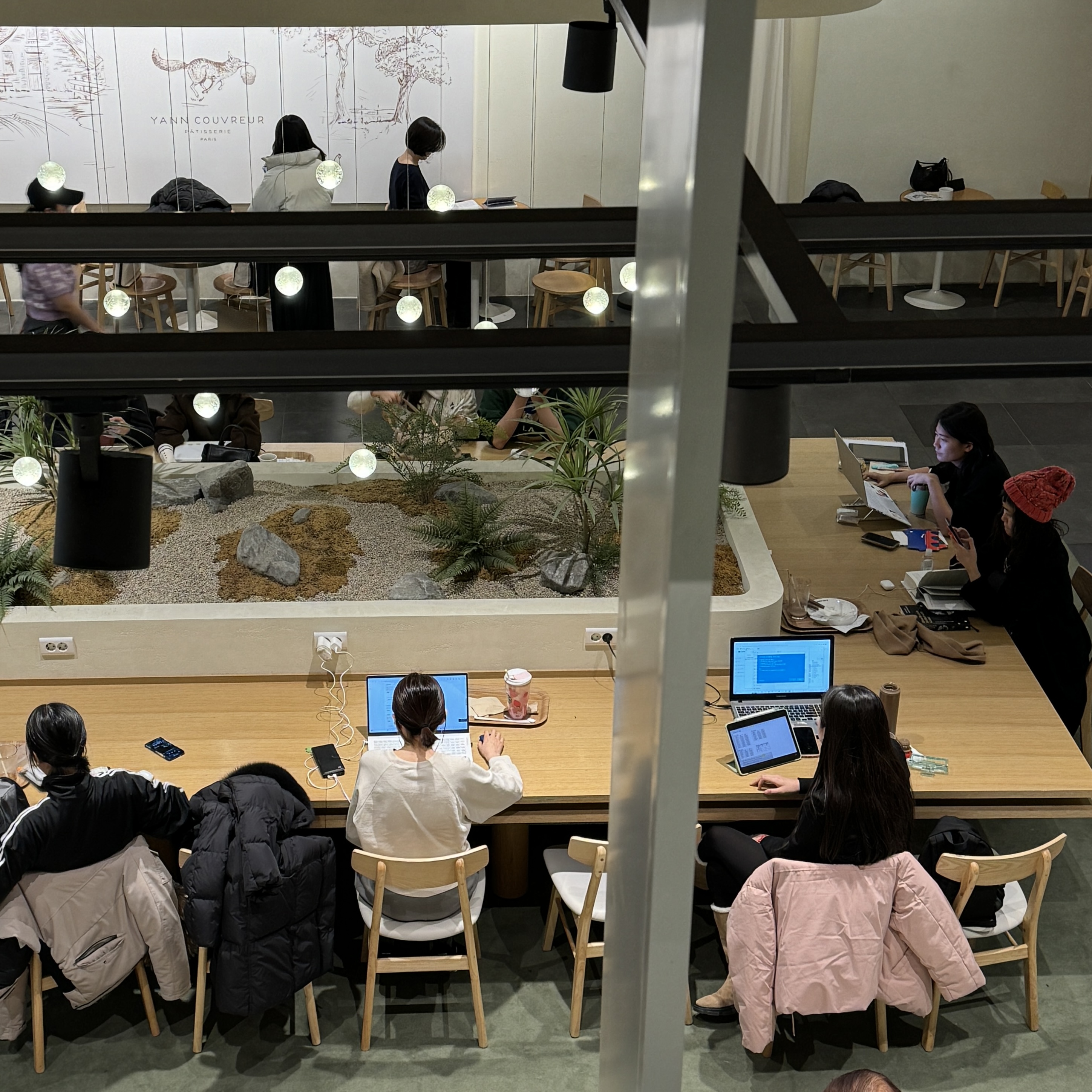 2층 올라가는 계단에서 보니 이렇게 혼자서 노트북 들고 와서 뭔가를 하는 MZ세대들이 보이더라. 우리나라에 카페 문화가 활성화되기 시작하면서 이렇게 혼자서 노트북 들고 또는 책을 들고 와서 자리 차지하는 이들이 생겨나기 시작했는데, 사실 나는 이런 문화를 이해 못했었거든? 집중이 되나? 독서실과 같이 조용한 데서 해야 집중이 잘 되지 않나? 그런 생각에 꼭 공부 못하는 애들이 이런 데 와서 공부한답시고 노트북 켜놓고 핸드폰 만지작거린다고 했던 사람이었다. 나도 나이 들어서 꼰대가 된 건지는 모르겠지만, 뭐 이제는 워낙 그런 이들이 많고 내 주변 지인 중에도 그런 이들이 있다 보니 그러려니 한다.