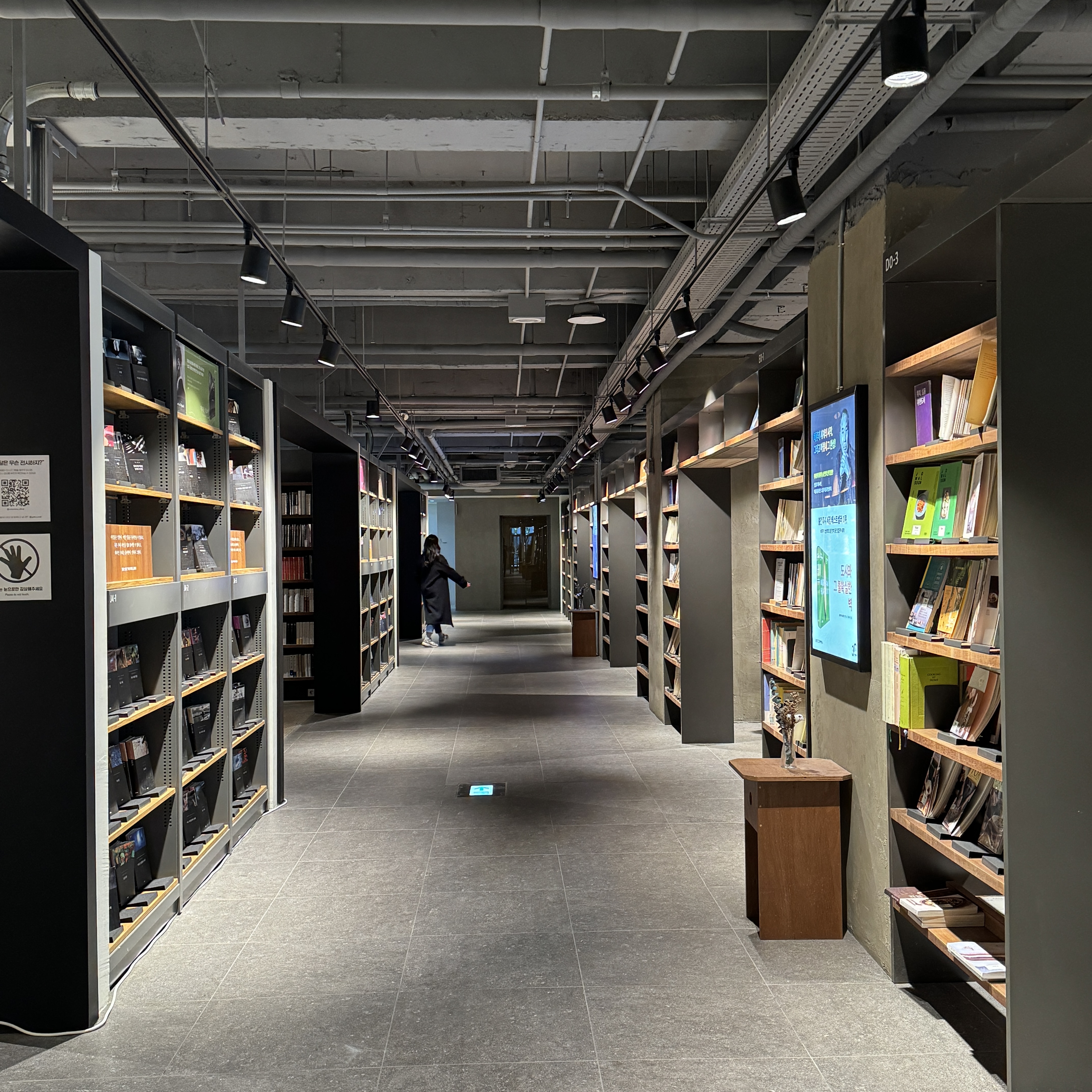 계단 벽에 있는 책들. 이거 그냥 들고 가서 읽을 수 있나? 예전에 홍대 카페꼼마에서는 거기에 있는 책 50% 할인 가격으로 살 수도 있었는데, 아직도 그 시스템은 여전한 건지 모르겠다. 게다가 이렇게 책을 전시만 해두면 무슨 의미일까. 그 내용을 읽어야 의미가 있지. 근데 이렇게 비치되어 있는 거 보면 가져가서 읽진 못하는 게 아닌가 싶기도 하고. 모르겠다. 안 물어봐서. 그래도 문학동네 시리즈 책인지 몰라도 표지가 깔맞춤되어 있으니 디스플레이용으로는 괜찮았던 듯. 문제는 나는 문학과는 거리가 멀어서(책을 좋아했던 시절에도 그랬다.) 읽을 만한 책은 없더라는 거.