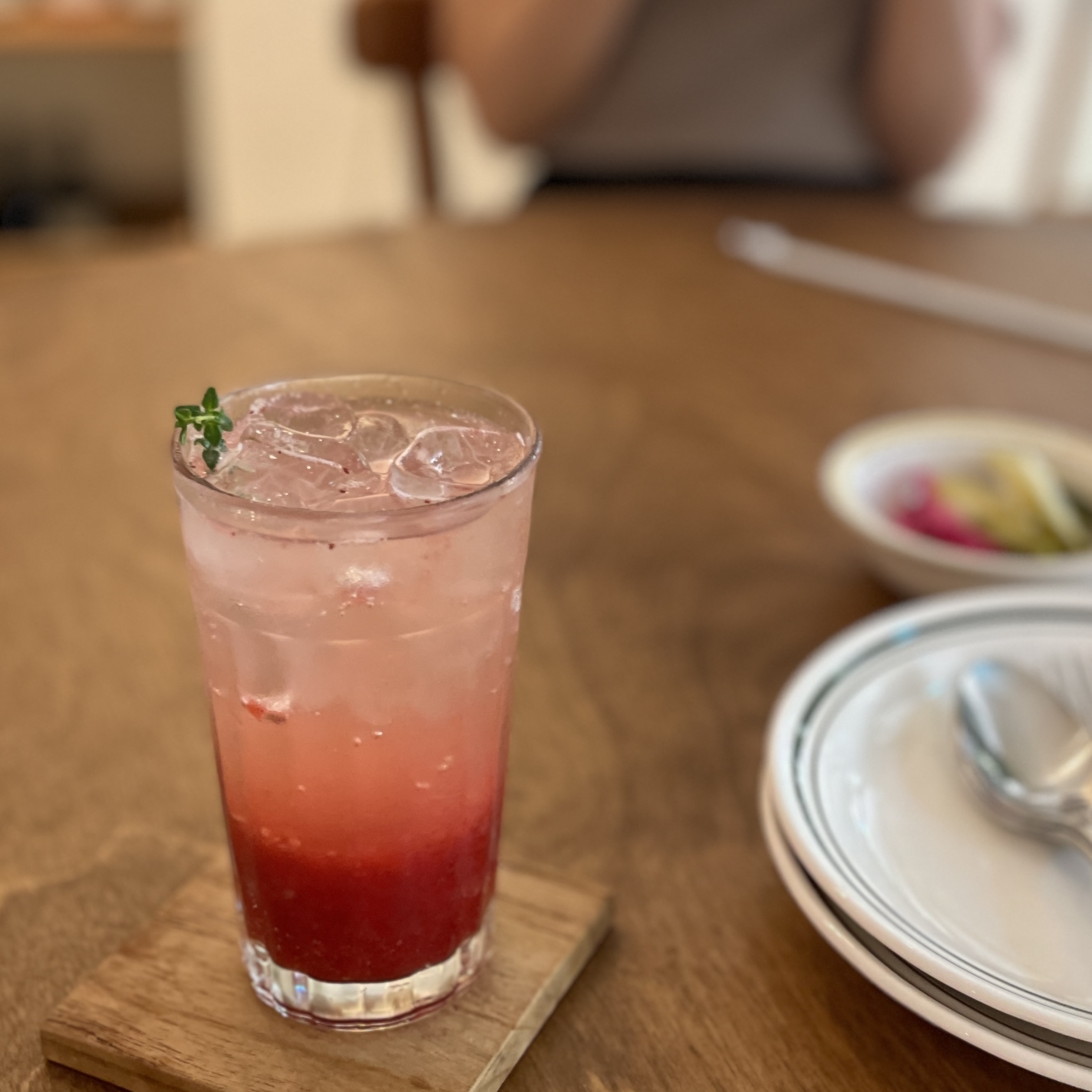 제일 먼저 음료부터 나오더라. 딸기 에이드. 이건 맛있다. 나온 메뉴들 중에서 제일 맛있었던 듯.