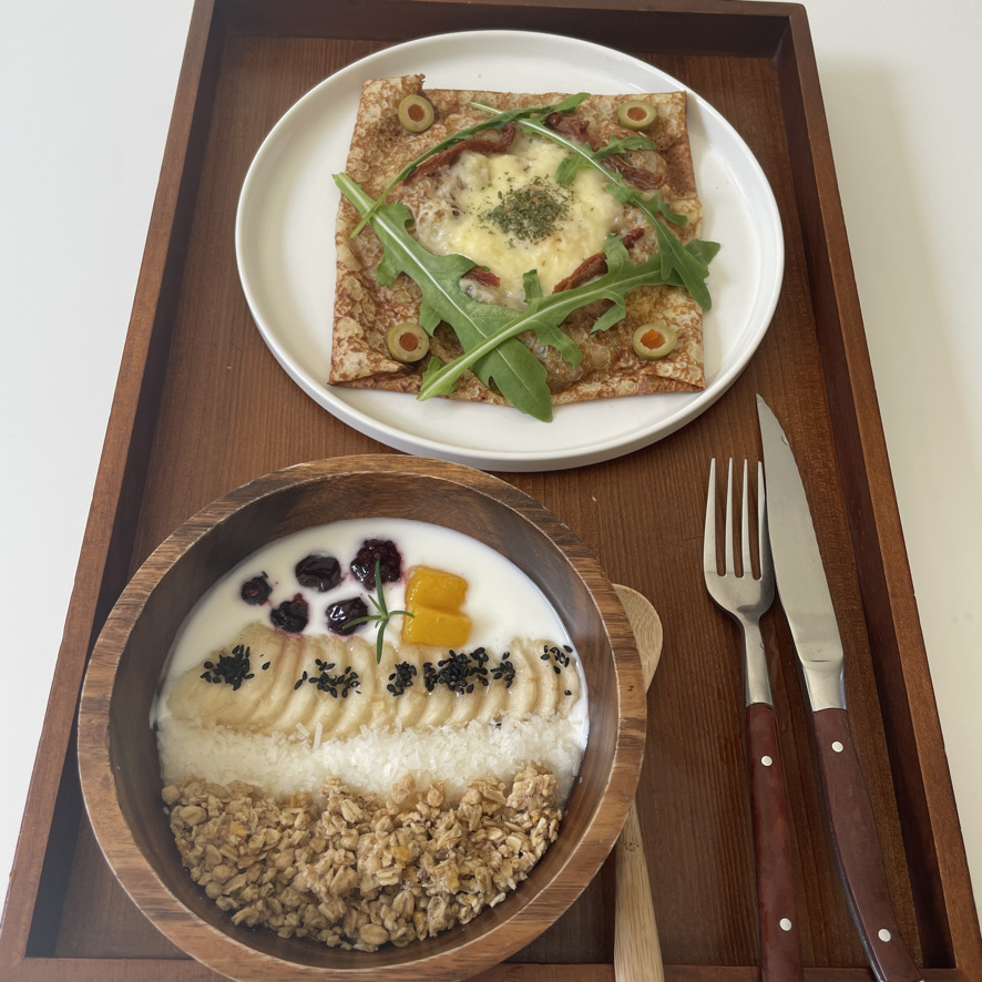 조식은 갈레뜨와 요거트볼을 주는데, 맛있어. 별 기대 안 했는데, 맛있어서 마무리까지 좋았던. 그래서 가격이 좀 된다 하더라도 후회가 없었던 듯 싶고, 추천할 만하다 생각하는 거다. 사실 파주에 보면 프라이빗 펜션 있지만 노천탕 이외에는 건물 이쁜 거 빼놓고는 별다른 특색이 없다고 할 수 있는데 여기는 즐길 거리도 있고, 조식까지 훌륭하다 보니 괜찮았다는 생각이 들더라.
