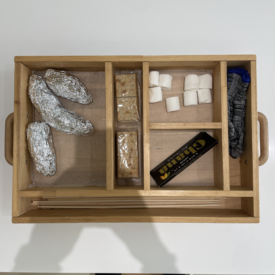 고구마, 마시멜로, 초콜렛, 비스 등. 식사를 끝내고, 불멍하다가 욕조 물 다 받으면 노천탕 즐기다가 들어와서 유투브를 보거나 영화 보다가 잠자면 딱인. 1박 2일 힐링하고 오기 좋은 펜션 아닌가 싶다.