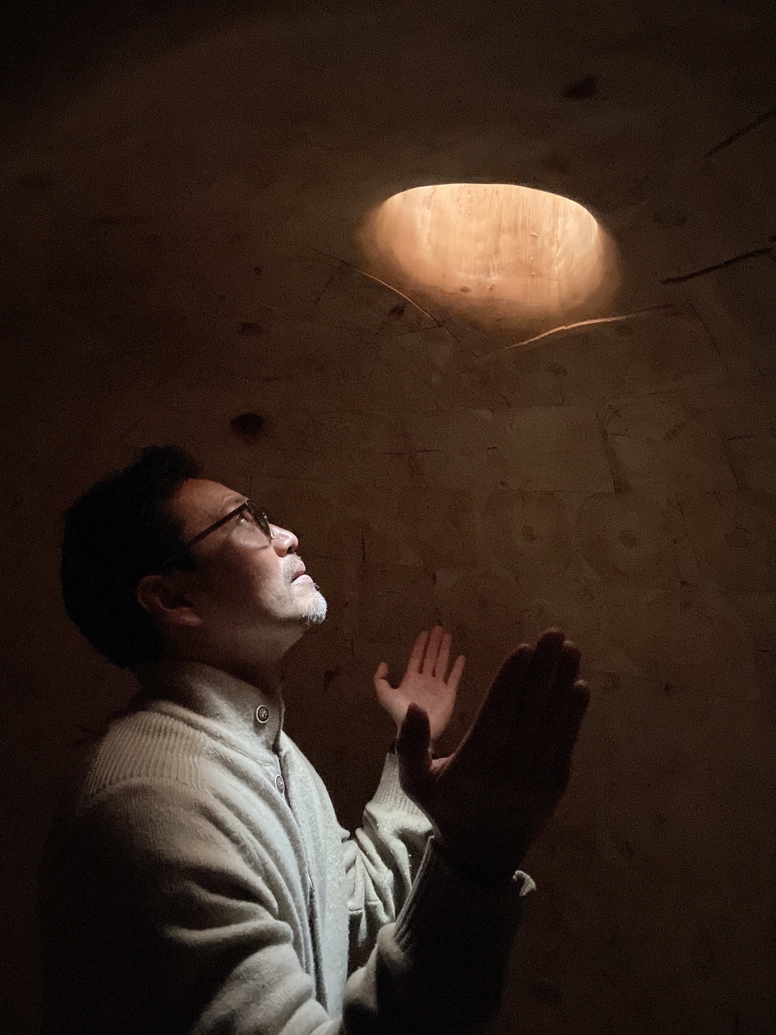 사진을 찍은 야고보실은 좁다. 1명이 들어가서 기도할 수 있는 공간이다 보니. 거기서 2명이 들어가서 이렇게 사진 찍었는데, 그래도 사진 하나 건진 걸로 족하다는. 한동안 이 사진으로 카카오톡 프로필 배경 사진을 썼더랬다. 문을 닫으면 깜깜하지만 천장에 뚫은 구멍 하나로 빛이 들어와서 좀 성스런 빛과 같은 느낌을 주고 집중이 잘 되어 기도에만 집중할 수 있게 만든 듯.