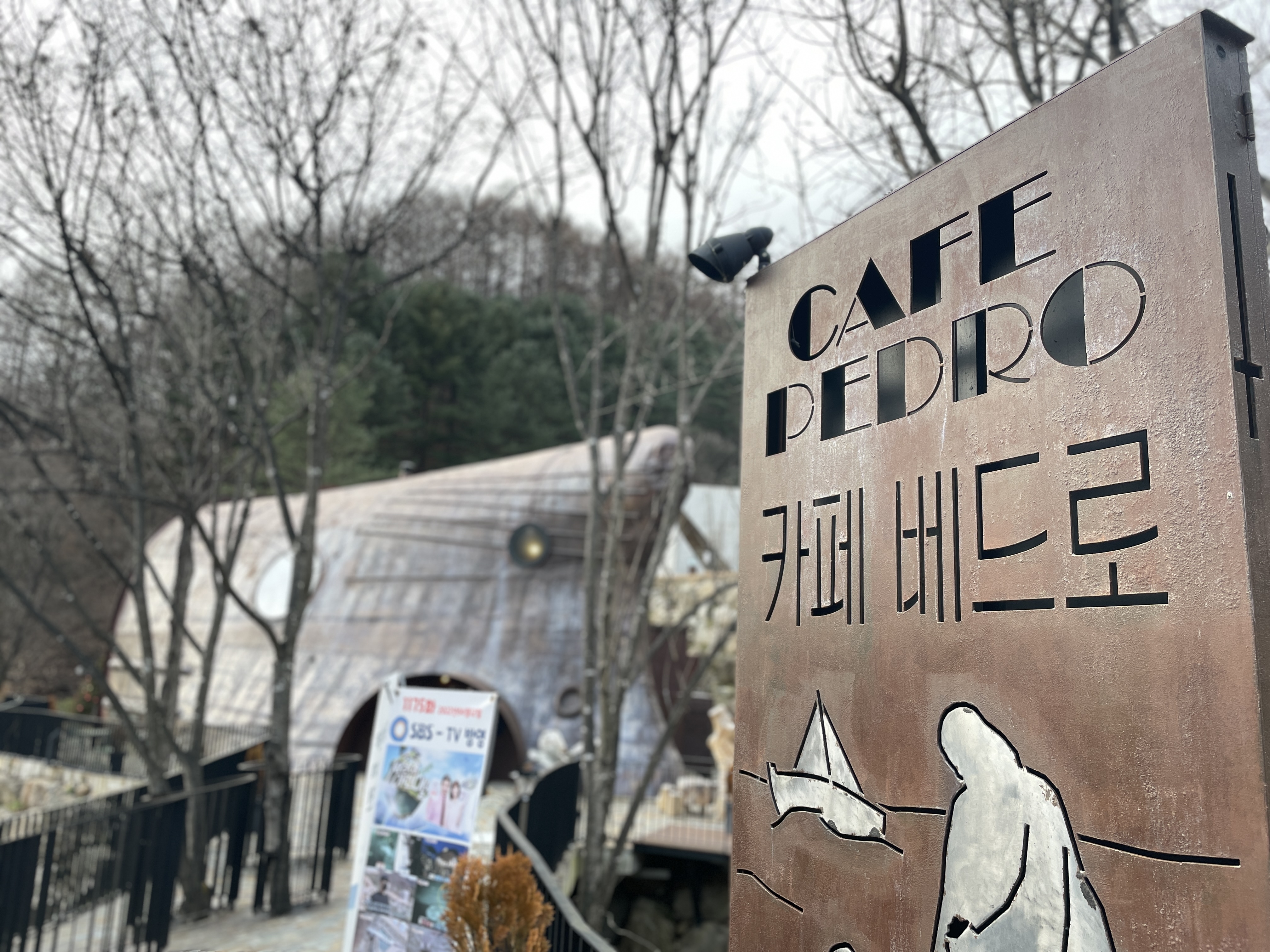 여기서 커피를 즐기진 않았지만 카페 건물이 특이해서 이를 배경으로 사진 찰칵.