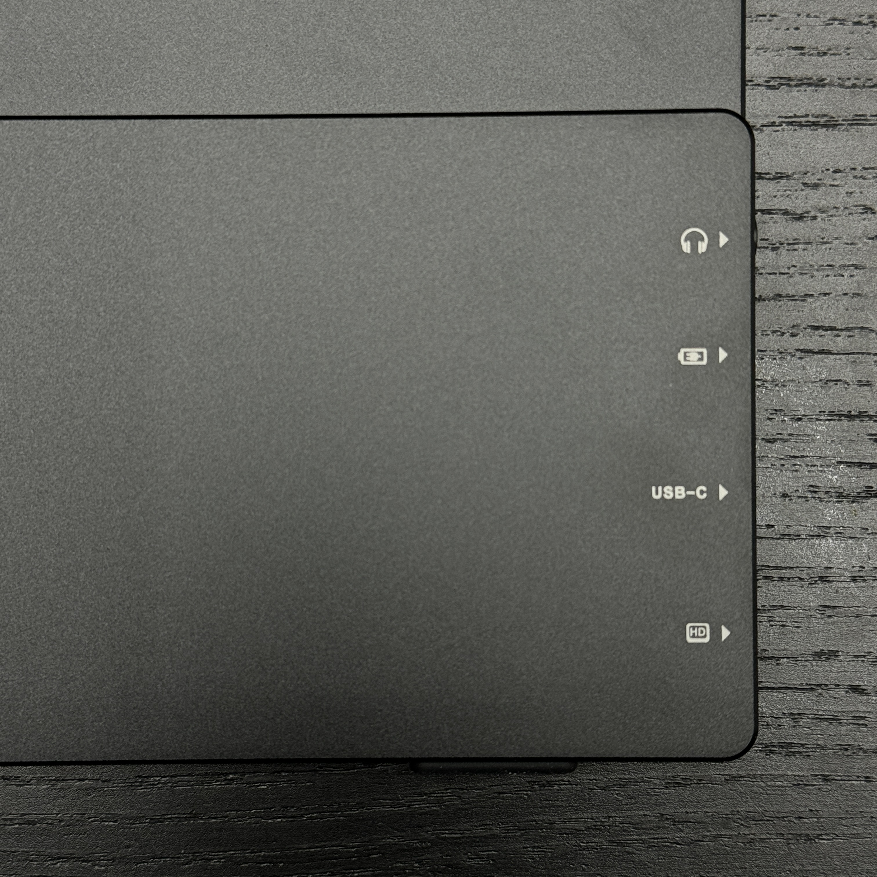 왼쪽에는 HDMI 포트, USB-C 데이터 포트, USB-C 전원 포트, 오디오 포트가 있다. 혹시나 해서 모니터 연결하면 내 블루투스 이어폰으로 나오는 게 아니라 이 모니터로 사운드 나올까 싶어 테스트해보니 그렇진 않더라. 일반 PC랑 연결할 때는 파워 케이블까지 연결해야 하고, 랩탑이랑 연결해도 HDMI 케이블로 연결하려면 파워 케이블 연결해야 한다. 그러나 랩탑에 썬더볼트 케이블로 연결하면 그럴 필요 없다. USB-C 데이터 포트에 썬더볼트 케이블 연결하면 된다.(기본 구성품에 썬더볼트 케이블 포함되어 있음.)
