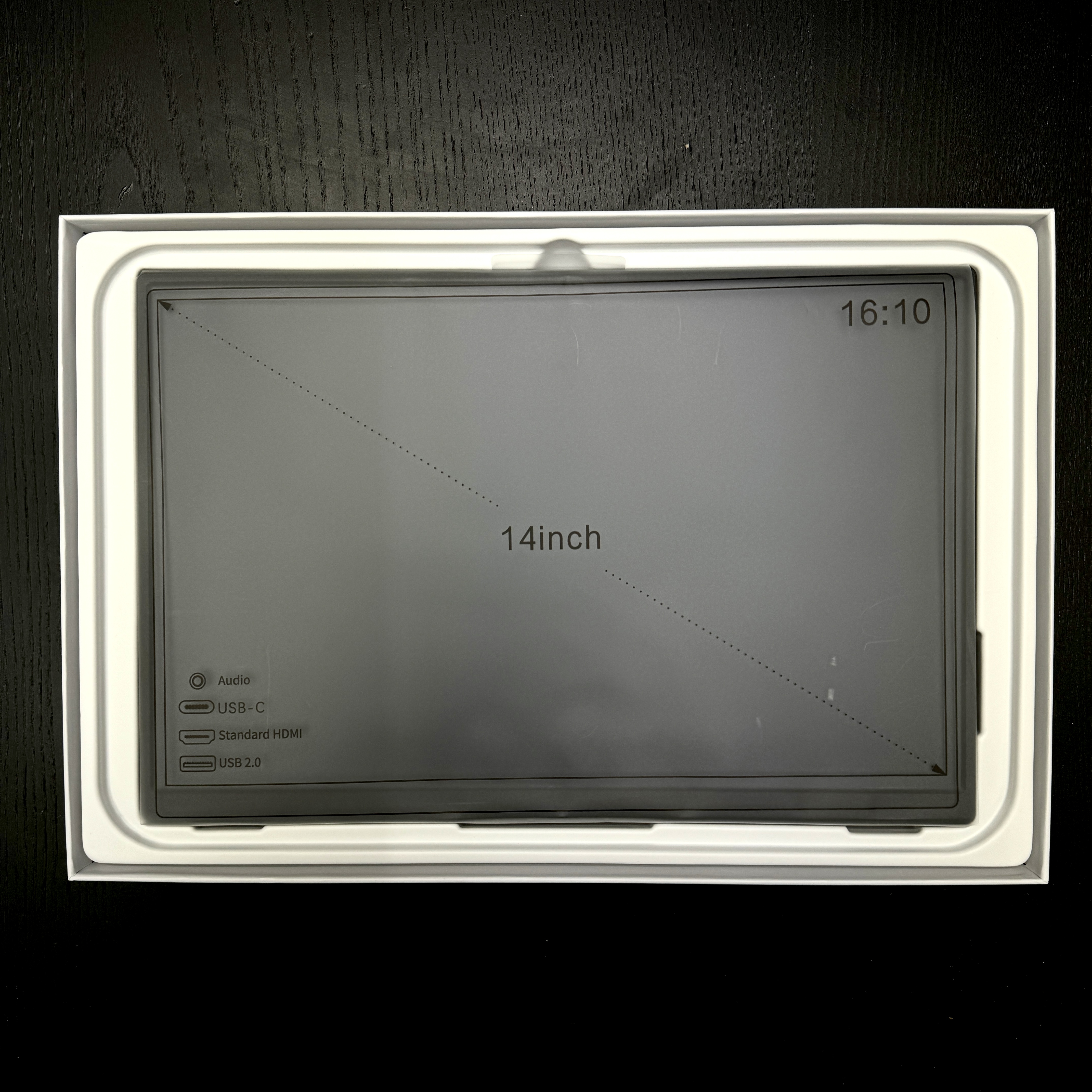 그 다음에 14인치 포터블 모니터다. 왜 내가 14인치를 택했냐? 이동할 때 들고 다니려면 13~14인치 정도가 적당하다. 15인치 이상이 되면 들고 다니기 불편하다. 뭐 그것만 들고 다닌다고 하면야 문제가 없지만 이것 저것 들고 다닌다면 그렇다. 그냥 가정에서만 사용할 포터블 모니터였다면 좀 더 화면이 큰 게 좋은 선택지가 될 지 모르겠지만, 나는 여러 가지를 고려해서 14인치를 택한 거다. 화면 비율은 16:10이다.