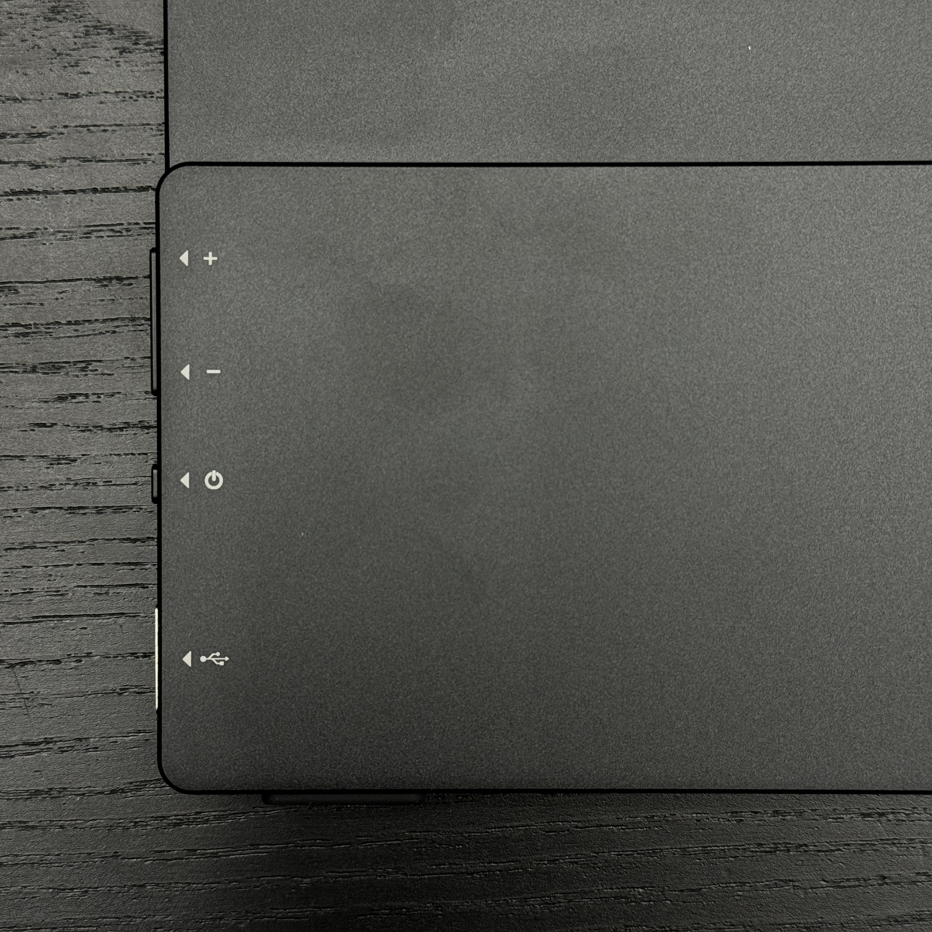 오른쪽에는 USB-A 포트, 전원 버튼, 볼륨 버튼이 있다. 이거 오디오도 된다. 오디오 음질이 그렇게 좋다고 하지는 않던데, 나같은 막귀한테는 뭐 잘만 나오고 음이 깨지지만 않으면 되야~~~ 전원 버튼은 전원이 ON 상태일 때는 메뉴 선택 버튼이 되고, 메뉴가 디스플레이될 때는 볼륨 버튼은 설정값 조절 버튼으로 변경된다.