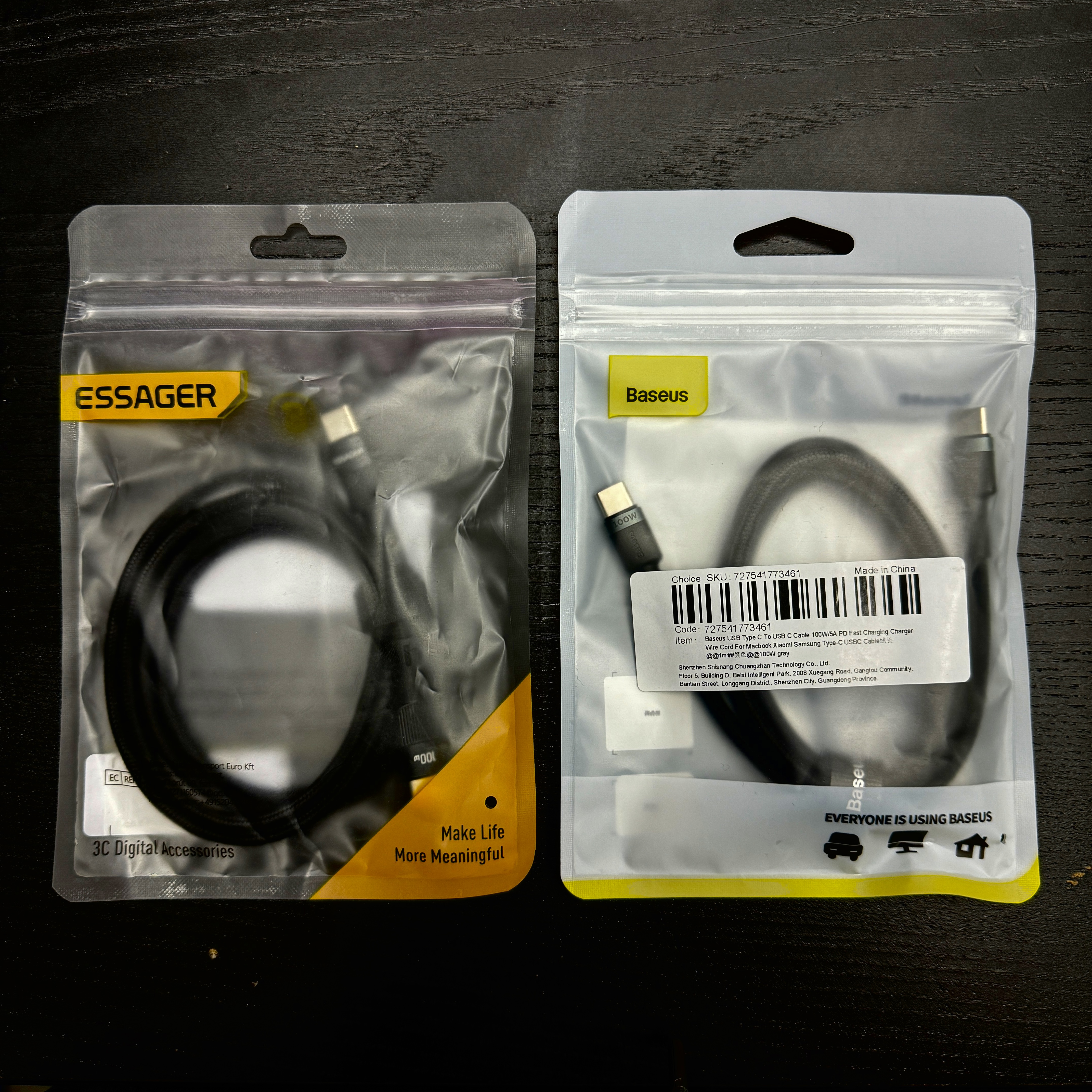 두 개를 샀다. Essager 제품은 테무에서, Baseus 제품은 알리에서. Baseus 제품은 알리가 더 싸더라고. 대부분의 경우 테무가 싸던데, 안 그런 제품도 있긴 있더라. 하나는 랩탑 충전 케이블로 사용하려고 구매한 거고, 다른 하나는 집이나 사무실에서 충전할 때 사용하려고 산 거다. 원래 내 스타일 상 같은 브랜드 제품으로 통일하는 편이긴 한데, 둘 다 중국 제품 치고는 브랜드가 있는 거라 사봤더니만 뭐 똑같다. 그래도 Baseus 제품이 좀 더 이쁜.