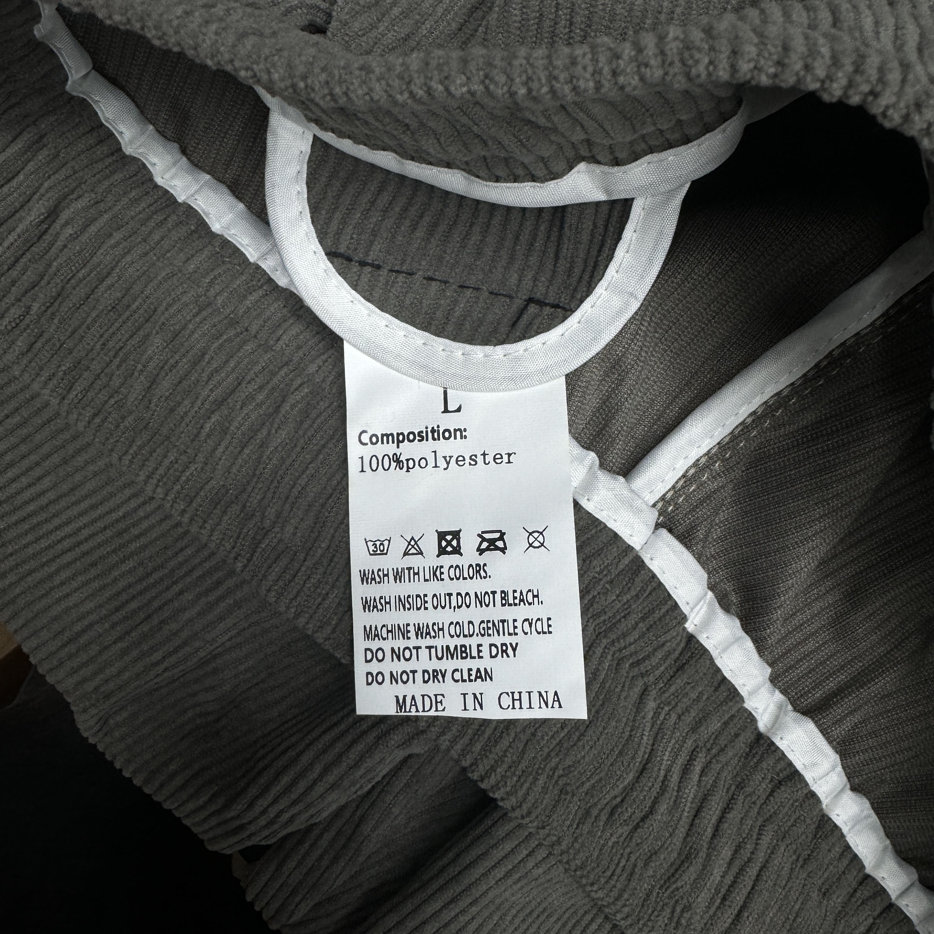 그리고 세탁 방법, 상품 재질 등은 이렇게 박음질로 해뒀더라. ㅎ 조잡하게 시리. 그래서 이것도 뜯어버렸다. 재질은 보니까 100% 폴리에스터지. 뭘 기대하겠누. 가격 저렴한데. 저렴해도 너무 저렴한데. 내 팬티값도 안 되던데. ㅎ