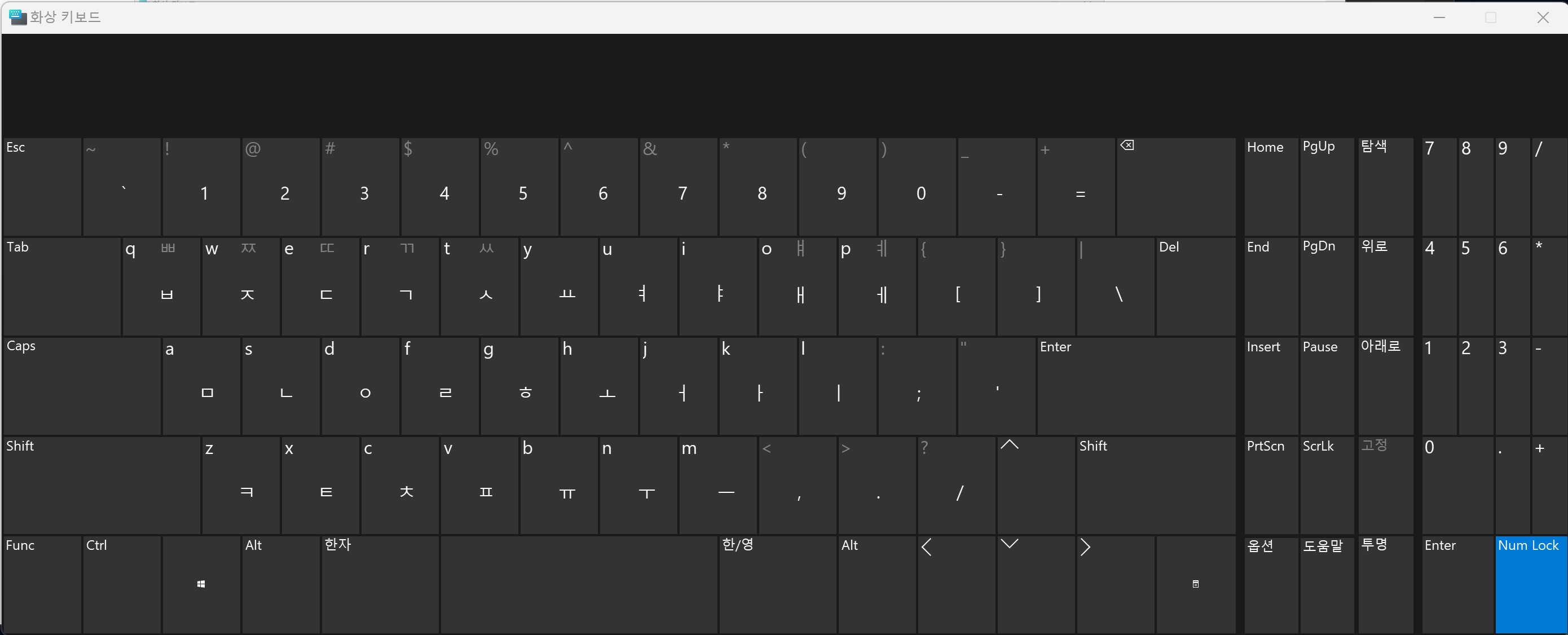 그러면 화상 키보드 맨 오른족에 숫자 키패드가 나타난다.