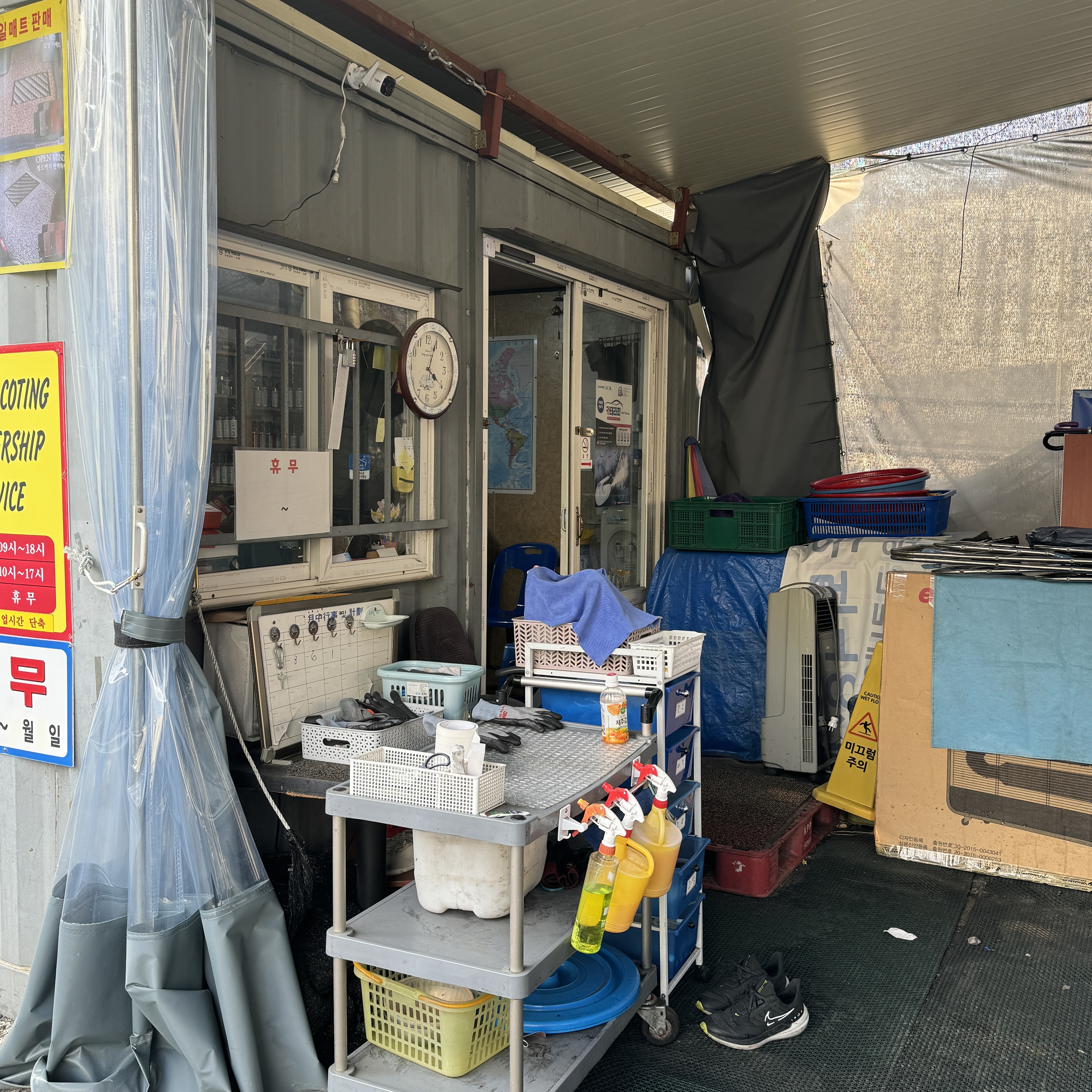 여기가 대기실이다. 시설이 그렇게 좋지는 않지만, 손세차의 목적은 얼마나 꼼꼼하게 잘 세차하느냐니까. 가격표 보면 알겠지만 꼼꼼하게 해주면서도 가격은 괜찮은 편이다. 대기실 내에 보니까 세차에 필요한 전용액에 차량 번호가 붙어 있더라. 단골이 많은 거 같다. 인정할 만한 게 그만큼 세차 꼼꼼하게 잘 해주신다.