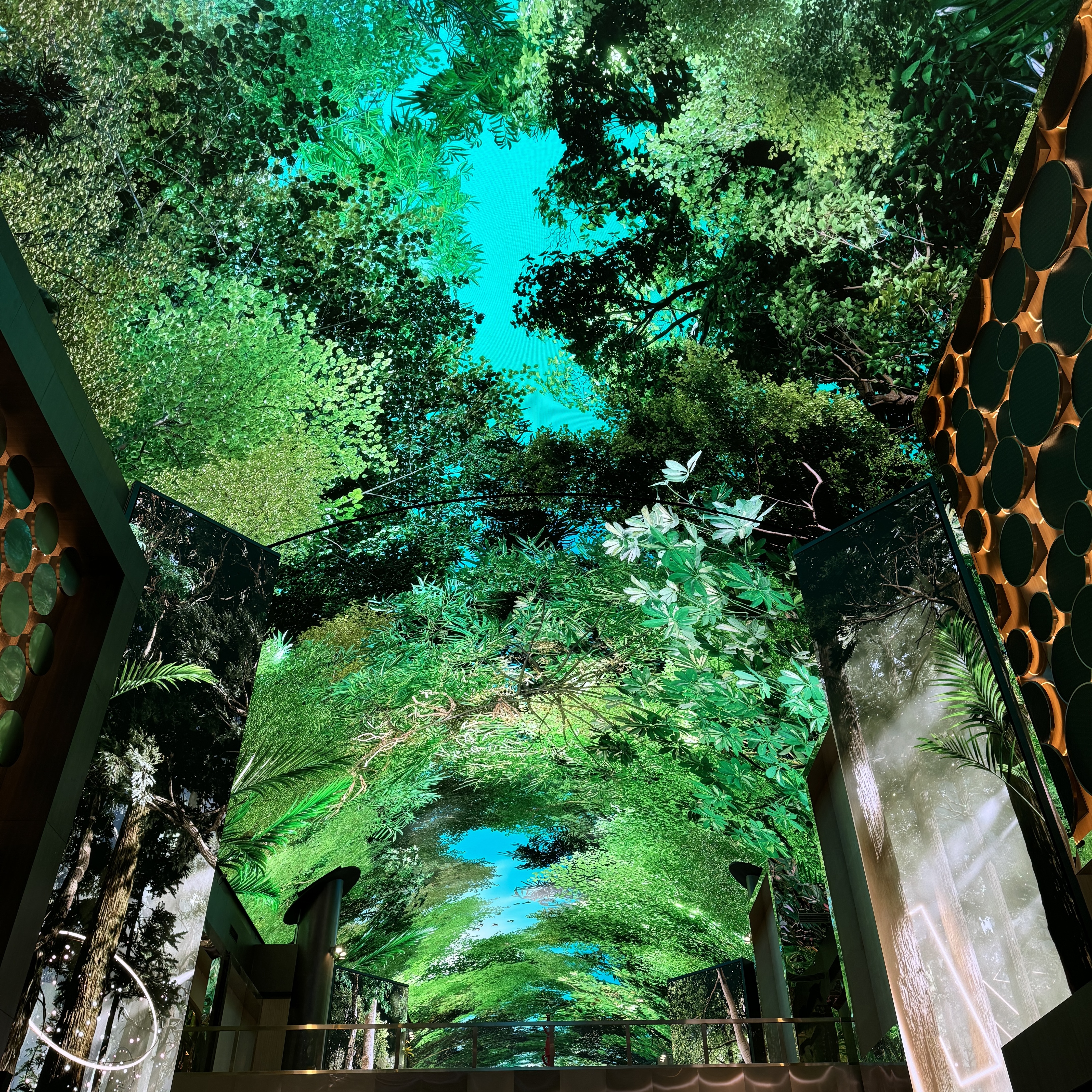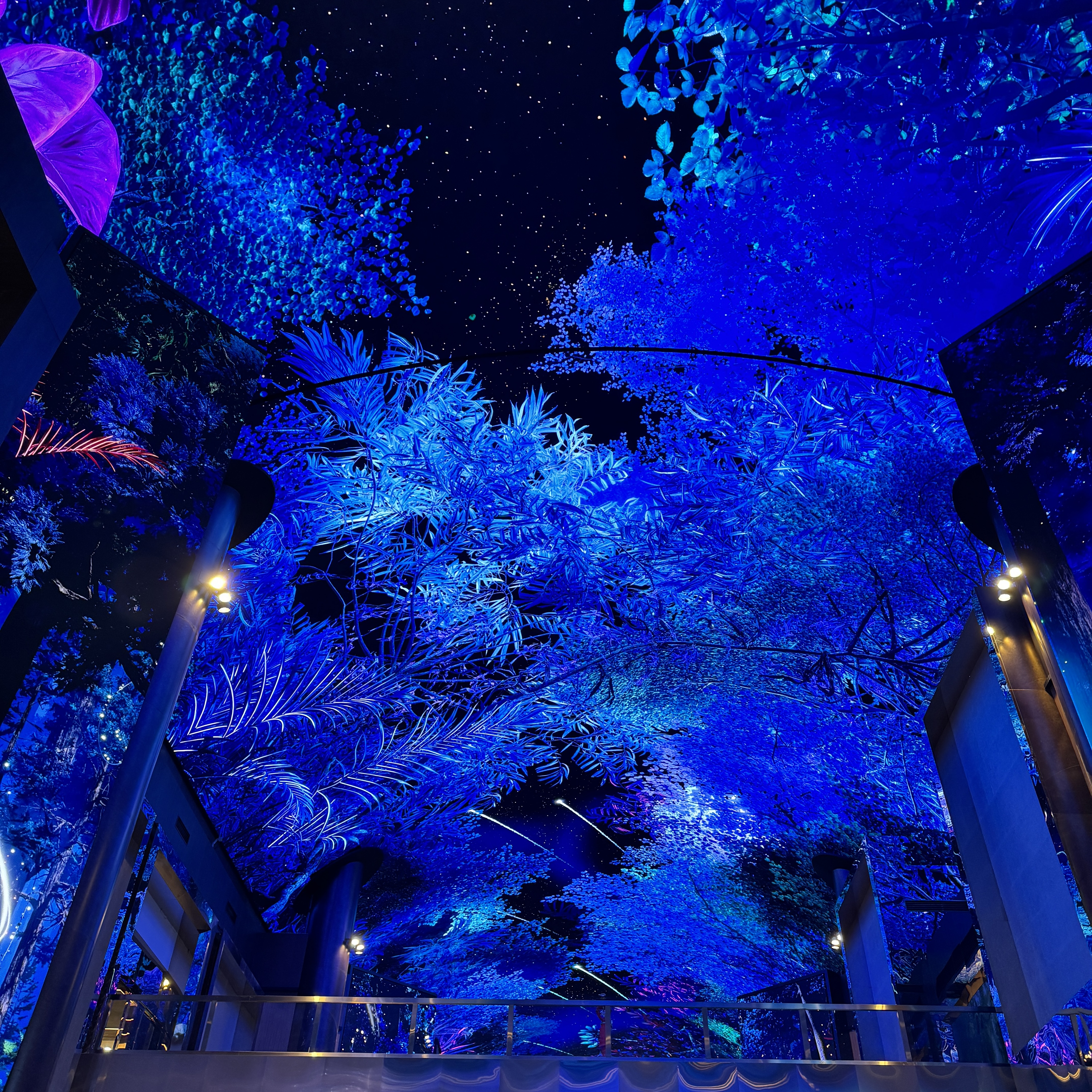 원형홀에서 이어진 오로라 공간은 정말 볼 만하다. 길이 150m, 높이 25m의 미디어 아트를 벽과 천장에서 맛볼 수 있다. 규모면에서 압도하는. 평상시에는 숲의 낮과 밤 미디어 아트로 디스플레이 되지만, 매시와 매 30분마다 오로라 쇼를 보여주는데, 현재는 'Under the Blue Land'라는 테마를 보여준다. 이거 나오면 사람들 걷지 않고 서서 핸드폰 올려서 영상 찍는다. ㅎ 나도 찍었지만 그건 인스타에만 올렸다. 인스타그램에서 내가 본 게 이거였다. 보고 있으면 마치 해저 리조트에 온 듯한 느낌. 근데 생각보다 150m 라는 길이가 그리 길게 느껴지지는 않더라.