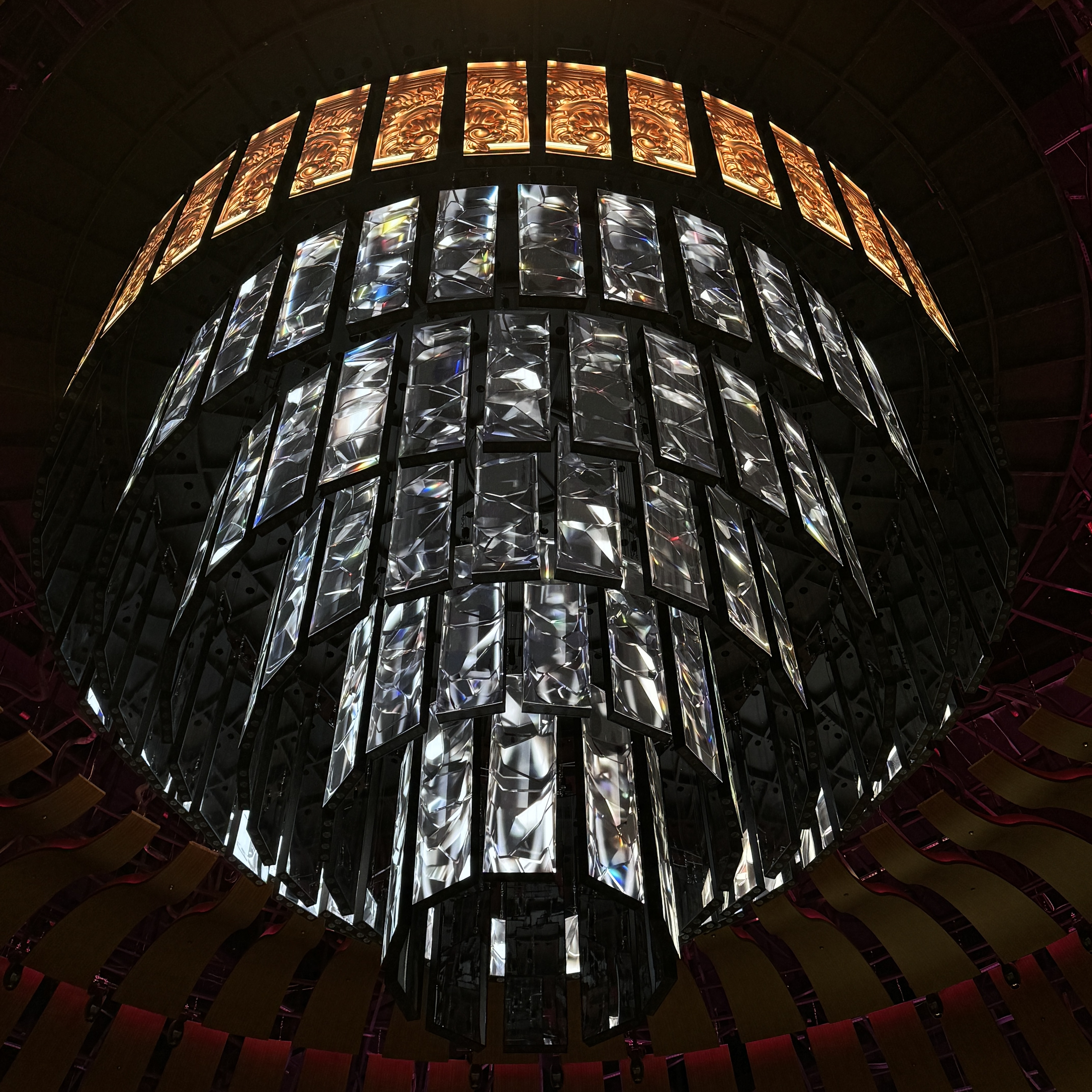 디지털 샹들리에 '로쿤다'. 15분, 45분마다 쇼를 보여주는데, 그 넓은 원형홀에 초대형 디지털 샹들리에라 규모 면에서 압도하는 느낌. 원형홀에 아무 것도 없어서 휑하지만 너무 넓다 보니 그렇더라. 여기 CU 편의점 있는데 디따 큼. 그러나 물건은 많지 않다. 공간이 크다 보니 진열대 사이가 빽빽하지 않고 듬성듬성. 조금은 공간 낭비가 아닌가 싶기도 하지만, 대신 초대형 디지털 샹들리에에 집중할 수 있게 되어 있는.