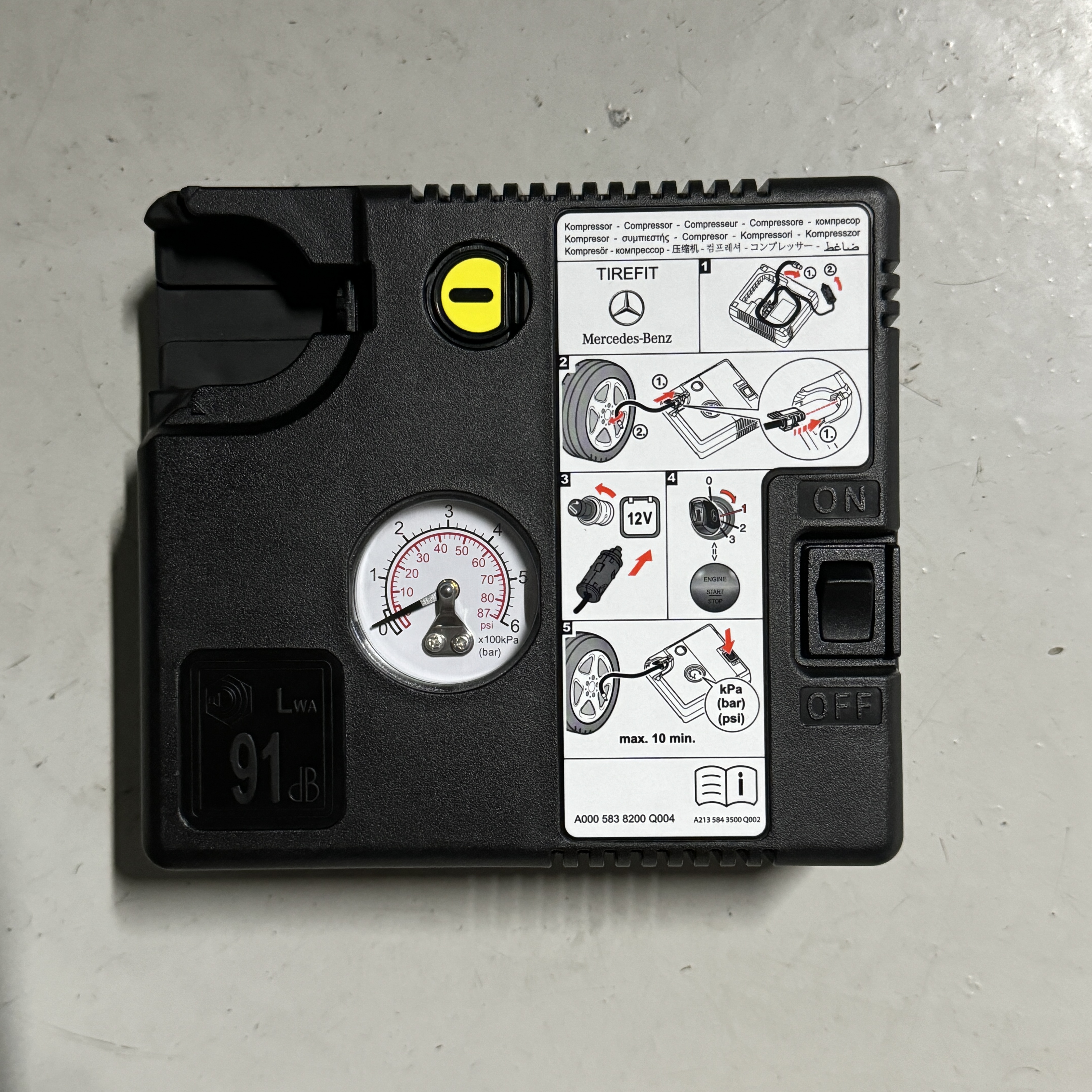 여튼 이렇게 타이어 공기압이 낮아지면, 인근 주유소 중에서 타이어 공기압 주입 기계가 있는 곳으로 가곤 했는데, 문득 차 트렁크에 기본적으로 제공하는 벤츠 타이어핏(TireFit) 키트가 떠올라서 주차장에서 한 번 이용해봤다.