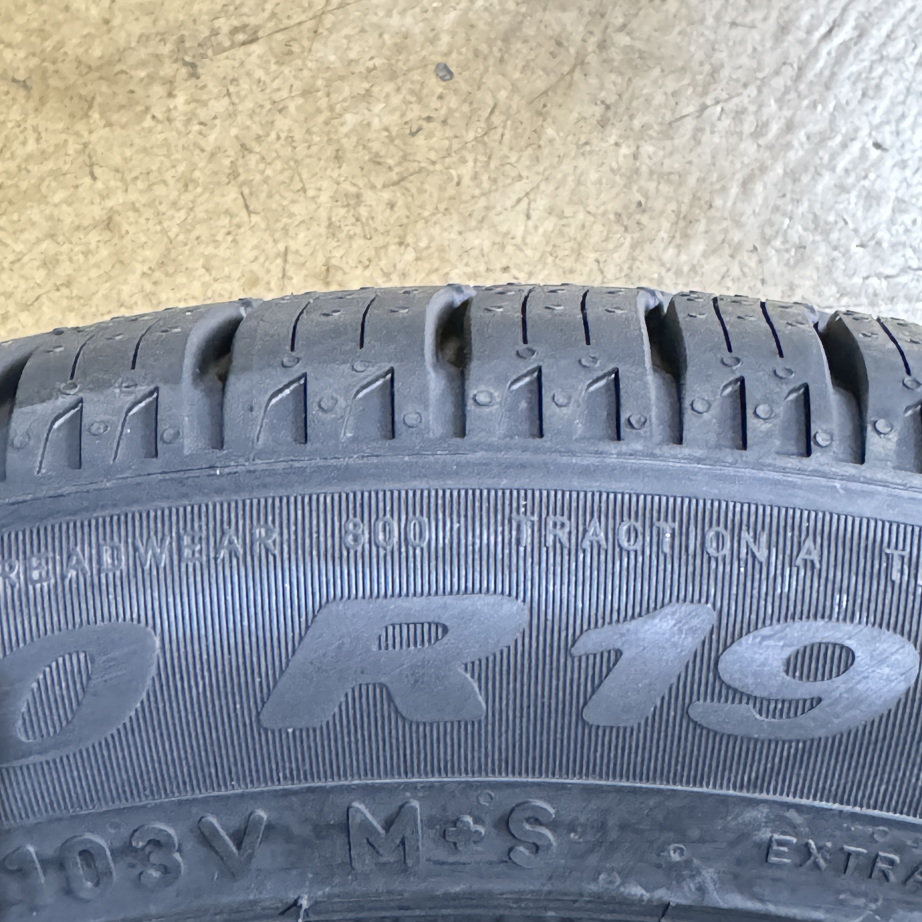 이번에 교체한 타이어는 피렐리 사의 사계절 타이어다. 사계절 타이어는 타이어에 보면 M+S라고 적혀 있다. M은 Mud, S는 Snow로 진흙이나 눈길에서 다 탈 수 있는 전천후 타이어 그러니까 사계절용이란 뜻이다. 사실 차를 아끼고 차에 투자 많이 하는 사람들은 스노우 타이어 별도로 구비해두는 경우도 있는데, 나는 그렇게까지 해서 차 타고 다닌 경우가 없어서 보통 사계절 타이어만 사용하는 편이다. 그리고 내 AMG GLA 4matic+은 앞 타이어, 뒷 타이어 모두 동일 사이즈더라. 235/50R19 (타이어폭 235mm, 사이드 높이 50mm, 19인치).