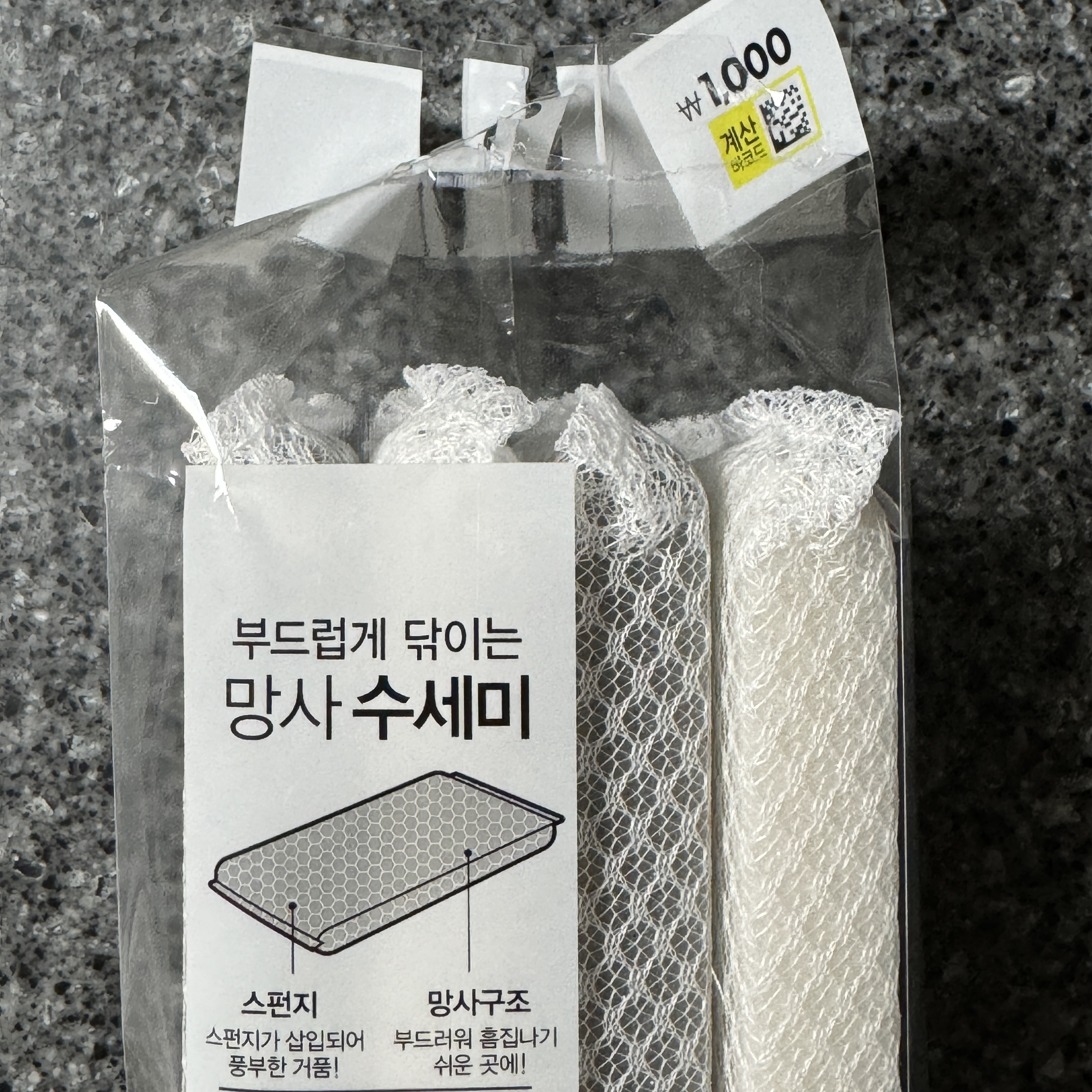마침 집에서 확인해보니 수세미가 필요했다. 담에 보게 되면 사야지 했었지. 그런데 사려고 하니까 며칠 안 보이시는 거다. 그래서 어쩔 수 없이 다이소에서 수세미를 샀다.