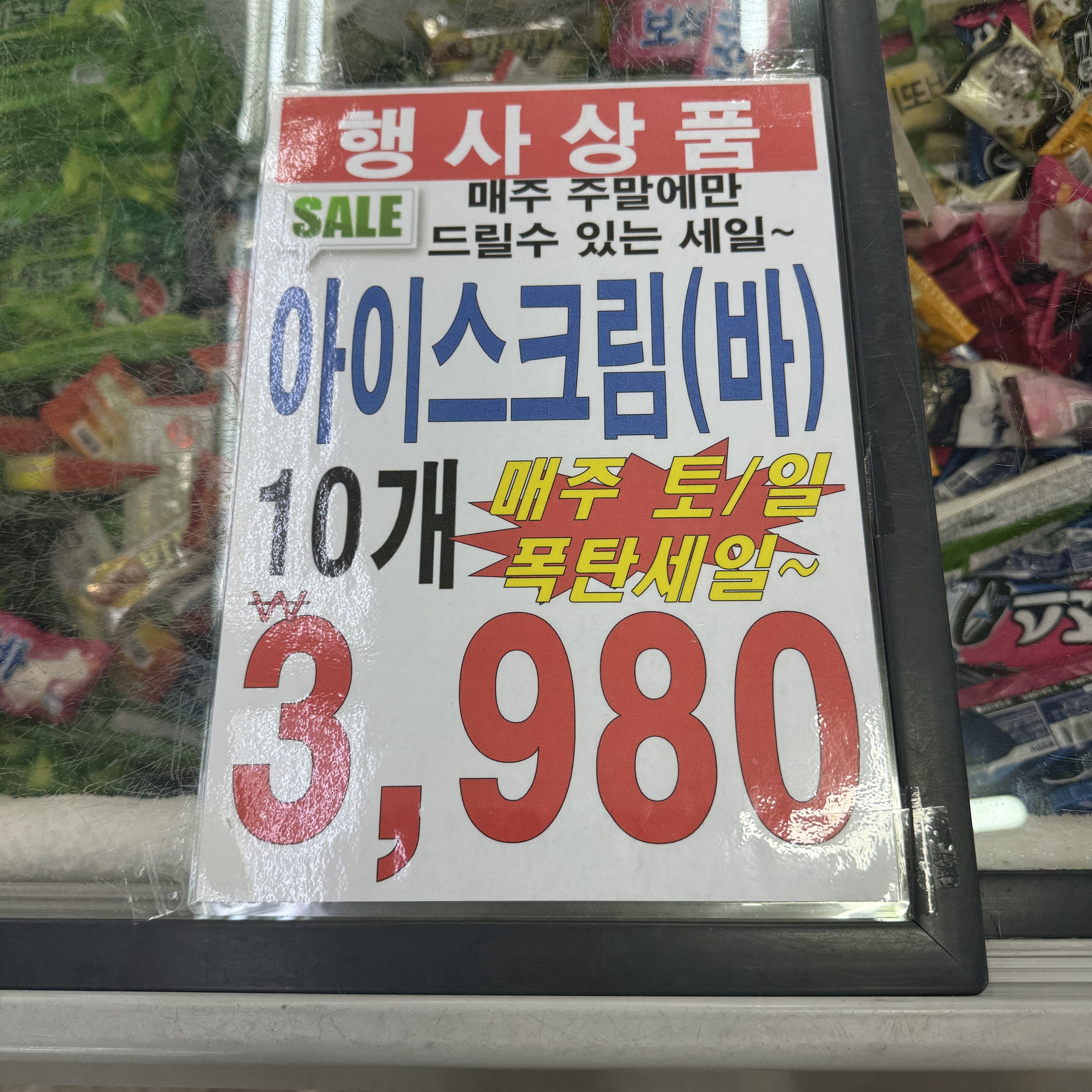 근데 주말에는 꼭 사는 게 있다. 바로 아이스크림. 주말이면 아이스크림 10개에 3,980원이다. 완전 저렴. 그래서 아이스크림 사러 간다. 평일에는 고기, 우유, 참치, 과일 이런 거 사러 가는 편이고. 내가 좋아하는 아이스크림은 바밤바. 원래는 쌍쌍바를 좋아했는데(내가 초코를 워낙 좋아해서) 요즈음에는 바밤바를 좋아한다. 그래서 바밤바 5개 샀고, 한 번 맛볼까 해서 맛봤다가 괜찮아서 사게 된 골드키위바. 이거 달다. 비슷한 생귤탱귤 감귤이 있는데 이건 맛없다. 골드키위바는 5개를 사려고 했으나 3개 밖에 없더라. 인기 좋은 듯. 그리고 메로나 2개.