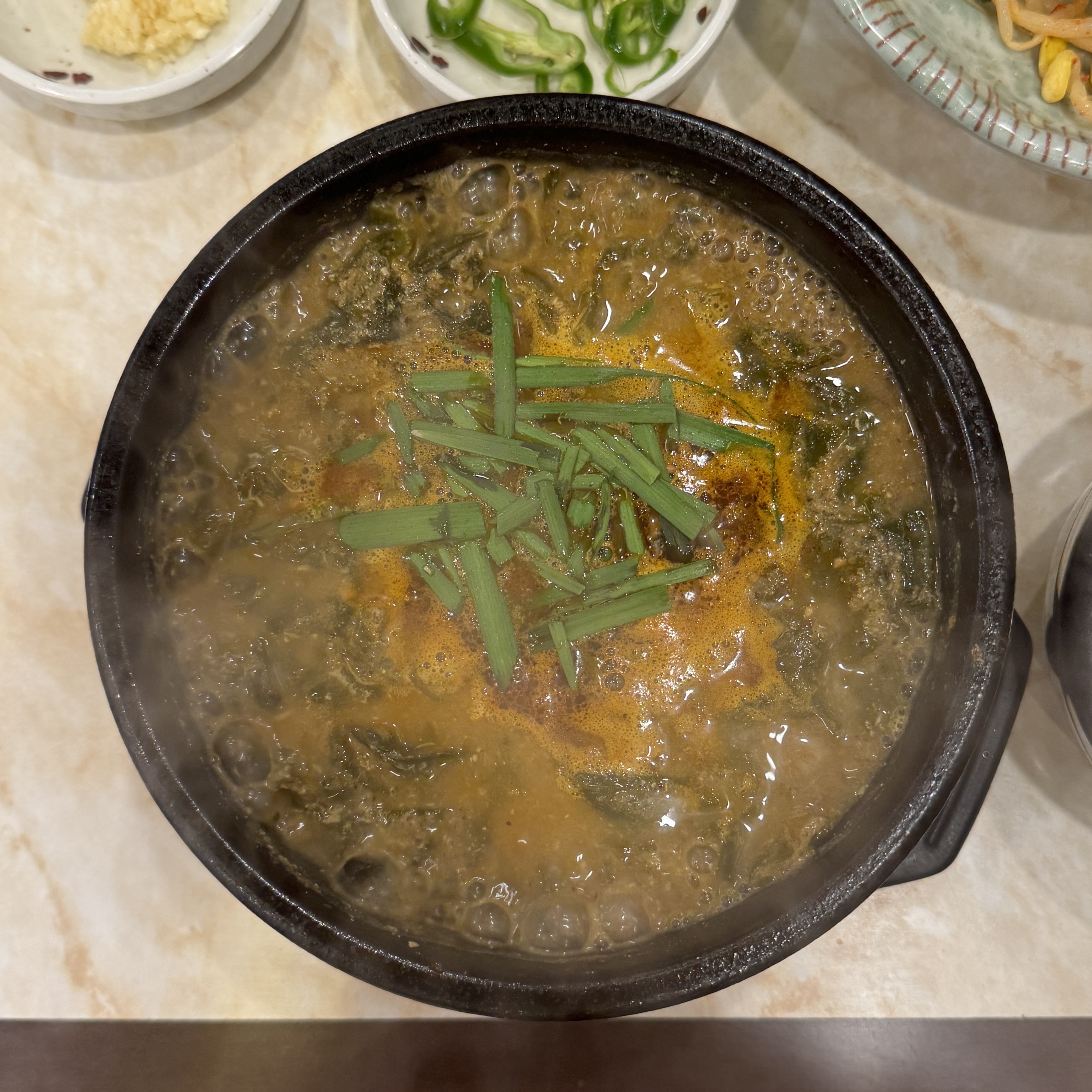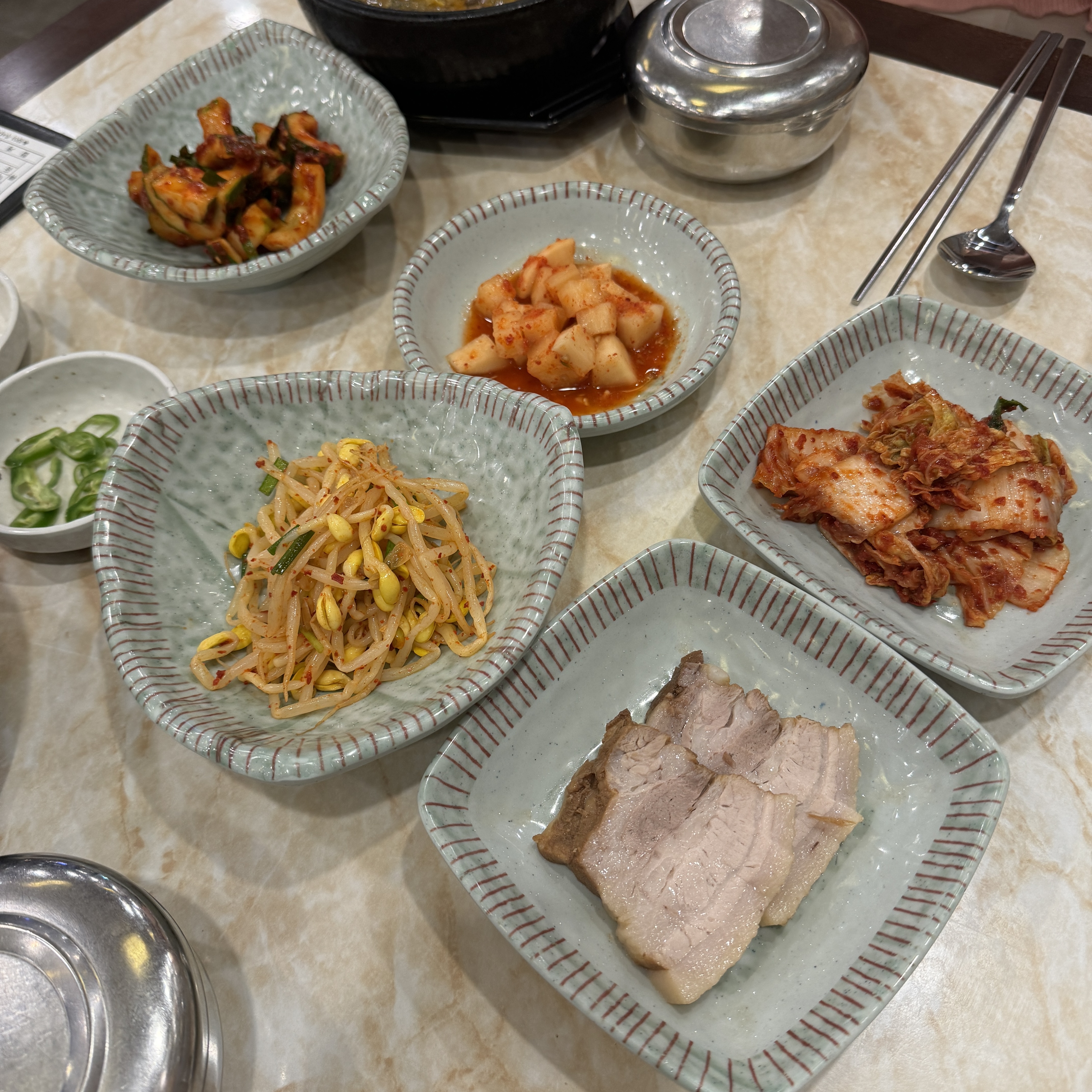 난 국밥류를 좋아하는데, 항상 처음부터 밥을 다 말아서 먹는다. 뜨거운 탕에 뜨거운 밥을 말아 넣으니 당연히 뜨겁지. 후후 불어가면서 먹어도 맛있어. 그리고 여긴 찬도 잘 나와서 수육도 한 점 나오더라. 나이가 먹으니 가끔씩 이렇게 보양을 해줘야 한다는.