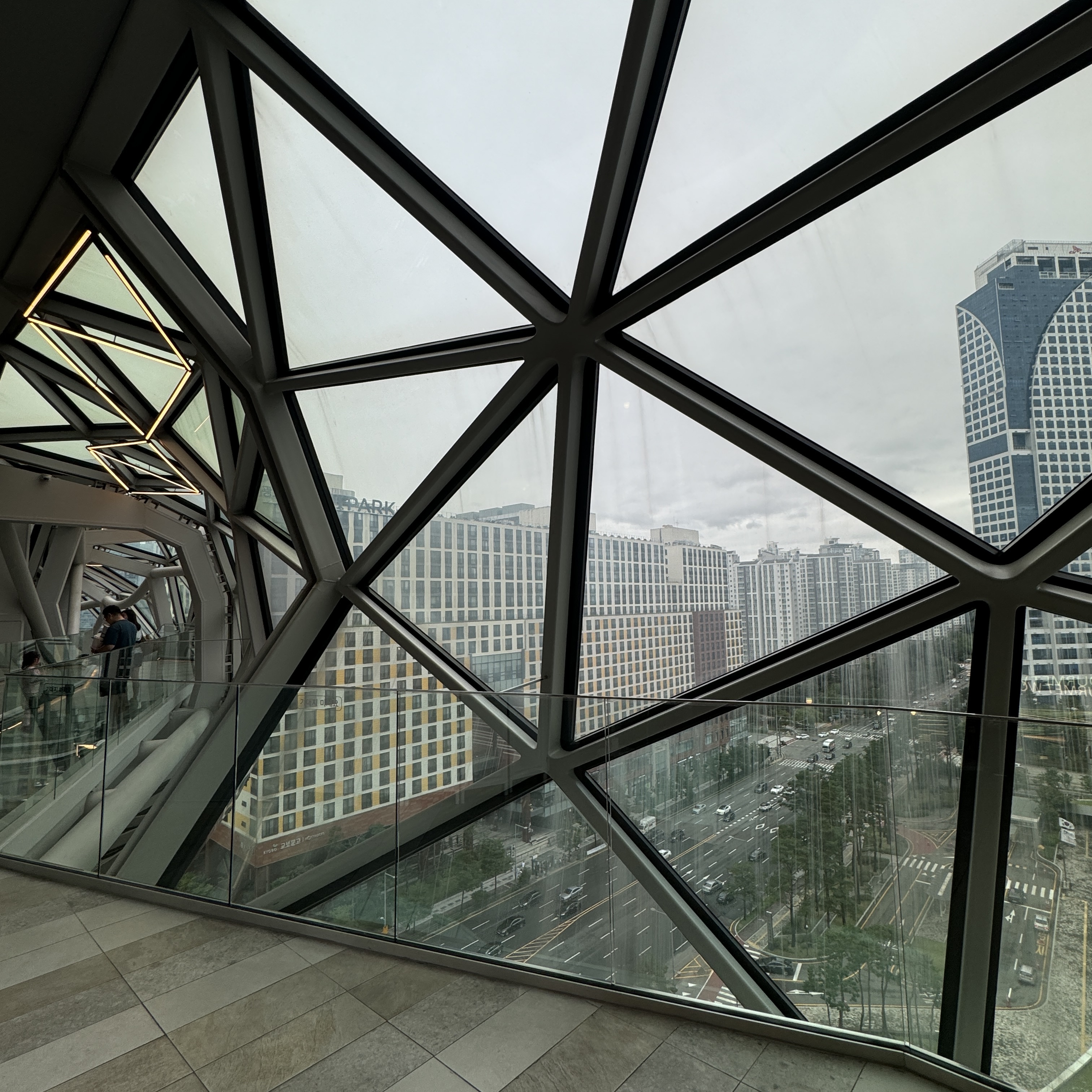 건물 외관에 보이는 튀어나온 유리는 이렇게 안에서 밖을 감상할 수 있는 유리더라.