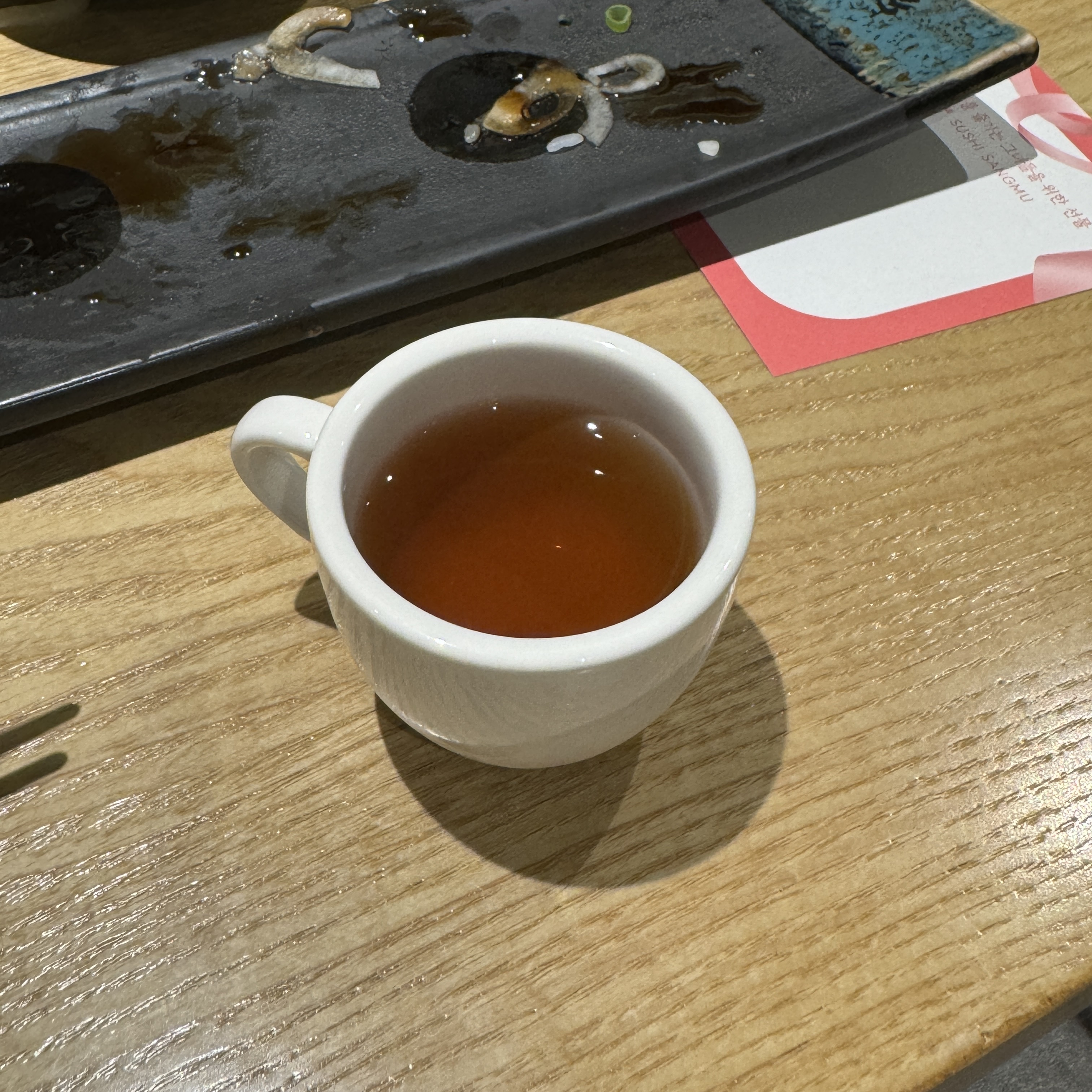 내가 머무는 장기임대 호텔은 인계동에 있다. 인계동에서 광교까지 15분 정도 거리라 차를 끌고 왔다 갔다 하는데, 평일 저녁에 별로 입맛도 없고 뭐 먹고 싶지도 않아서 안 먹으려다가 인근에 상무 초밥이 있길래 그걸 사서 먹었다. 장어 4pcs와 소고기불초밥 4pcs. 근데 바로 먹지 않아서 그런지 장어에서 비린내가 엄청나게 나는 거다. 하나 먹다가 도저히 못 먹겠더라. 내가 좀 비위에 약해. 이걸로 컴플레인을 했던 거다. 나중에 알고 보니 해동하고 바로 먹지 않고 실온에 좀 놔두면 이렇게 비린내가 난다고. 여튼 그렇게 해서 받은 쿠폰. 그래서 그거 쓸 겸해서 이번엔 매장에 방문.