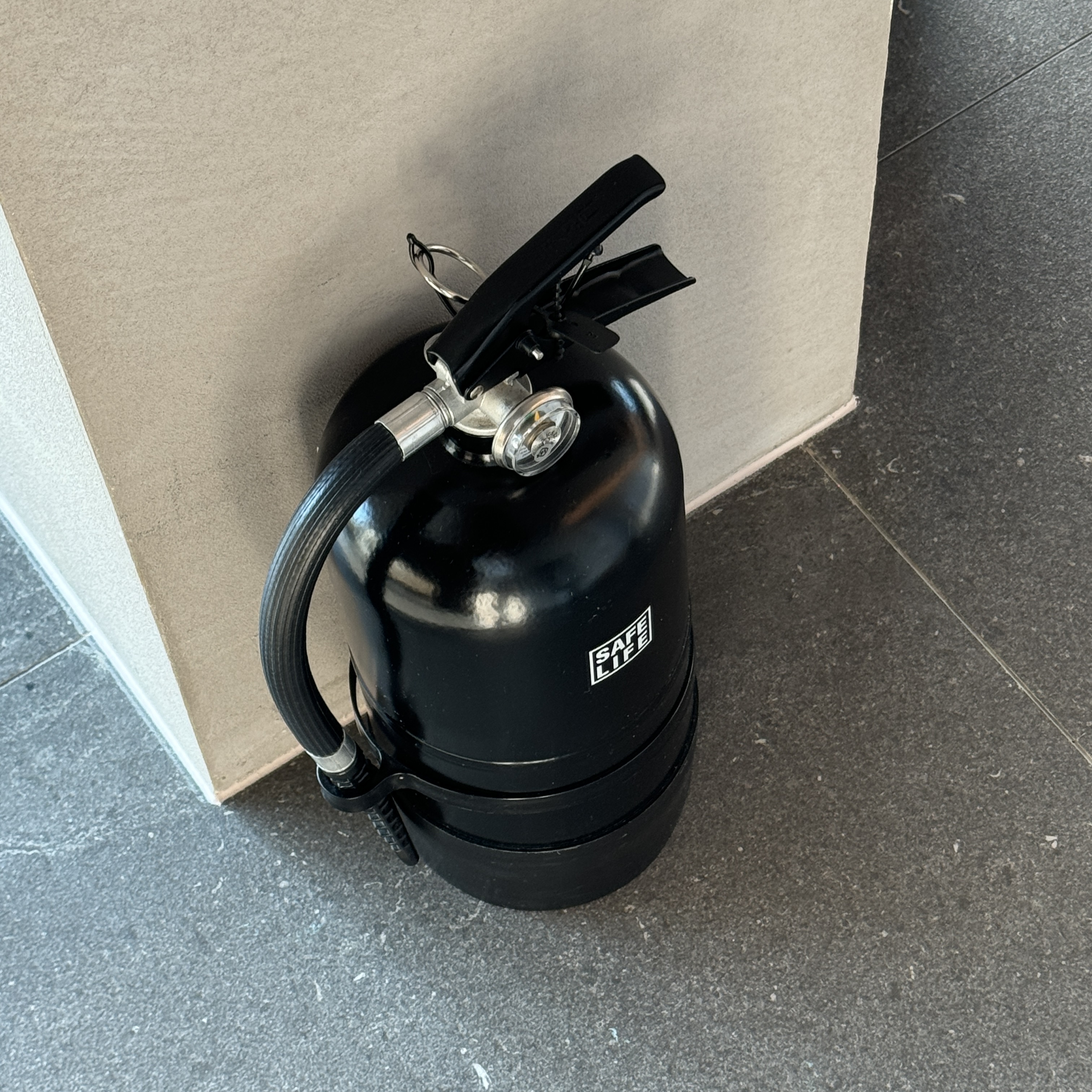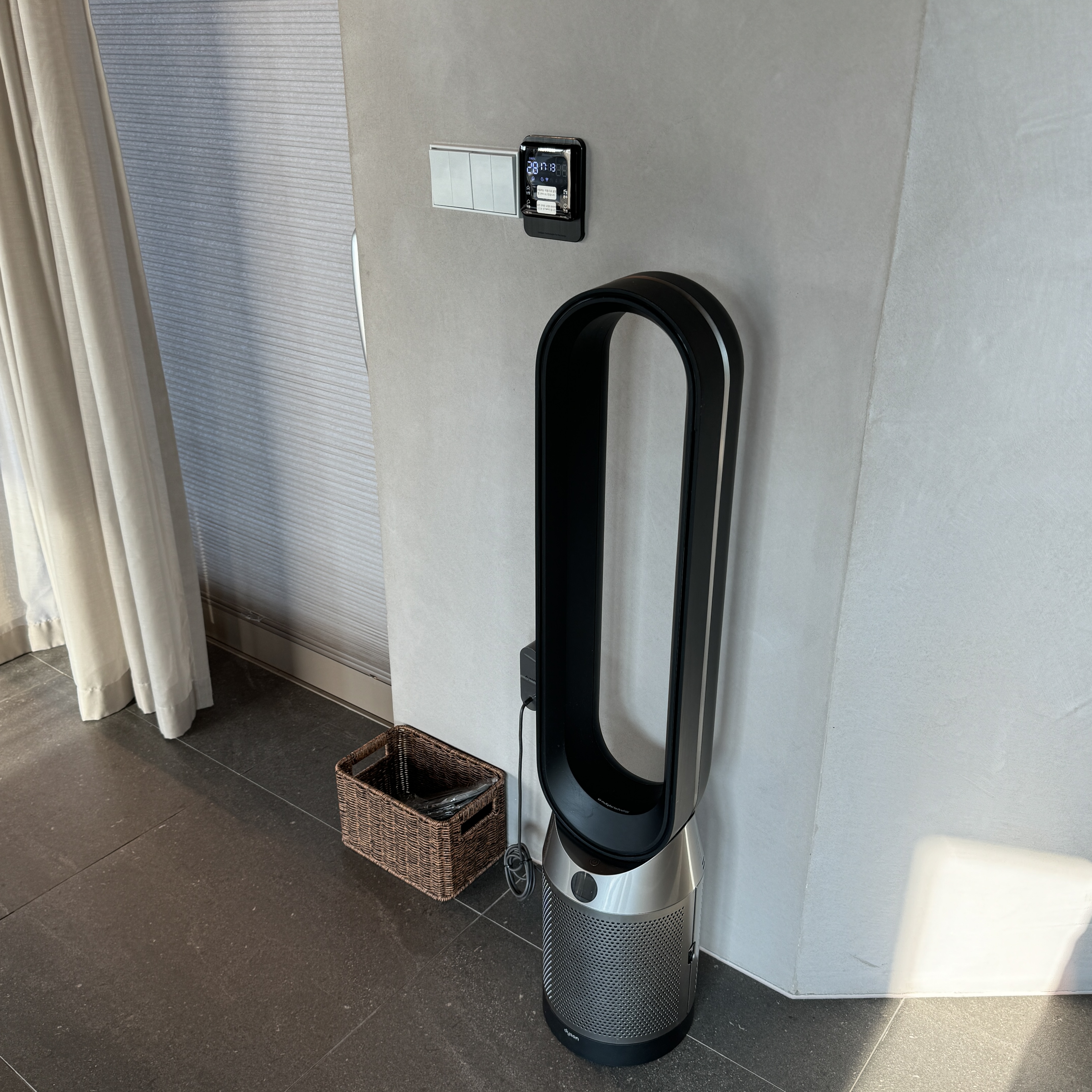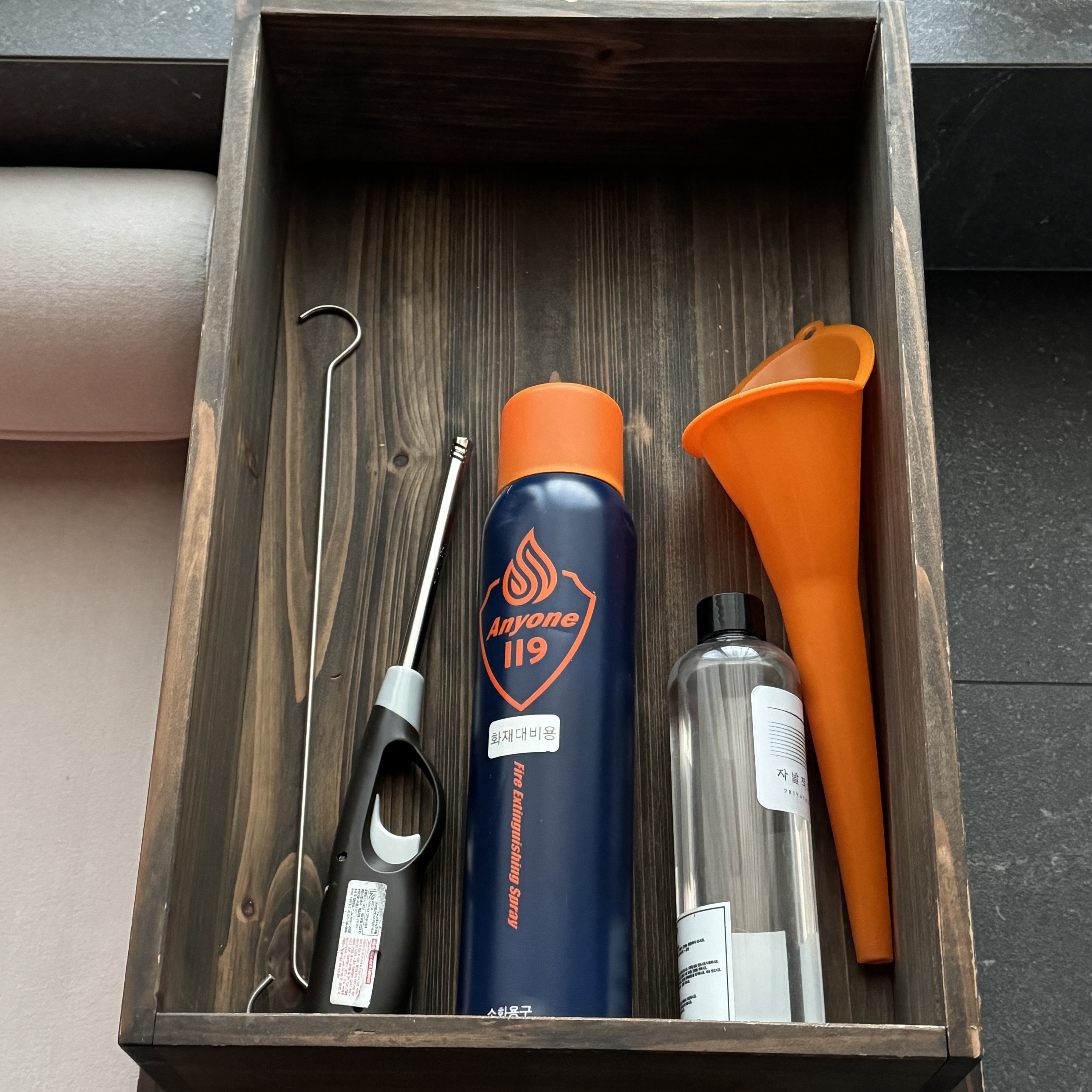 다이슨 쿨 공기청정기도 있었고, 소화기도 있었는데, 빨간 색을 검정색으로 칠해둬서 전체적인 공간 색상과 조화를 이루도록 해뒀다.