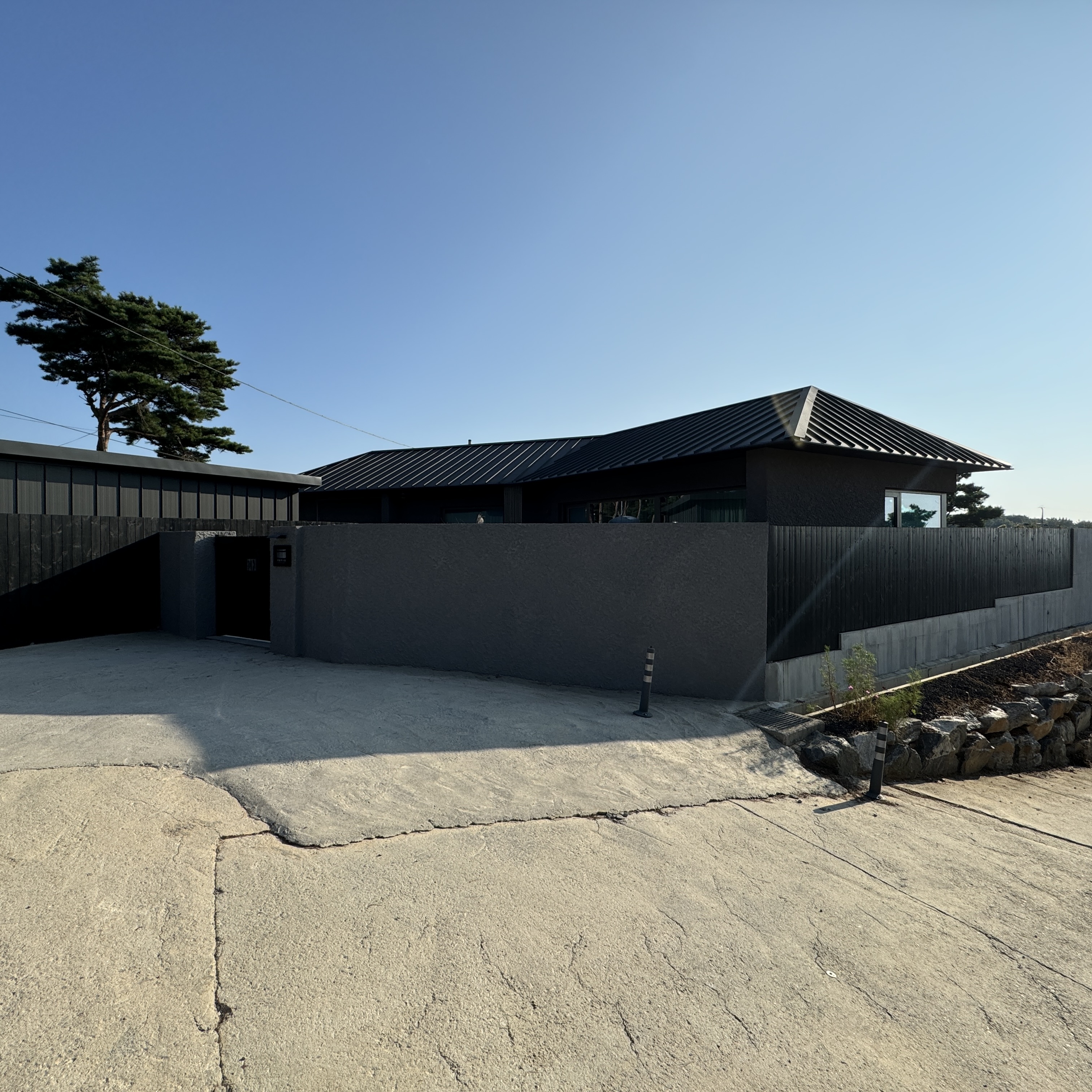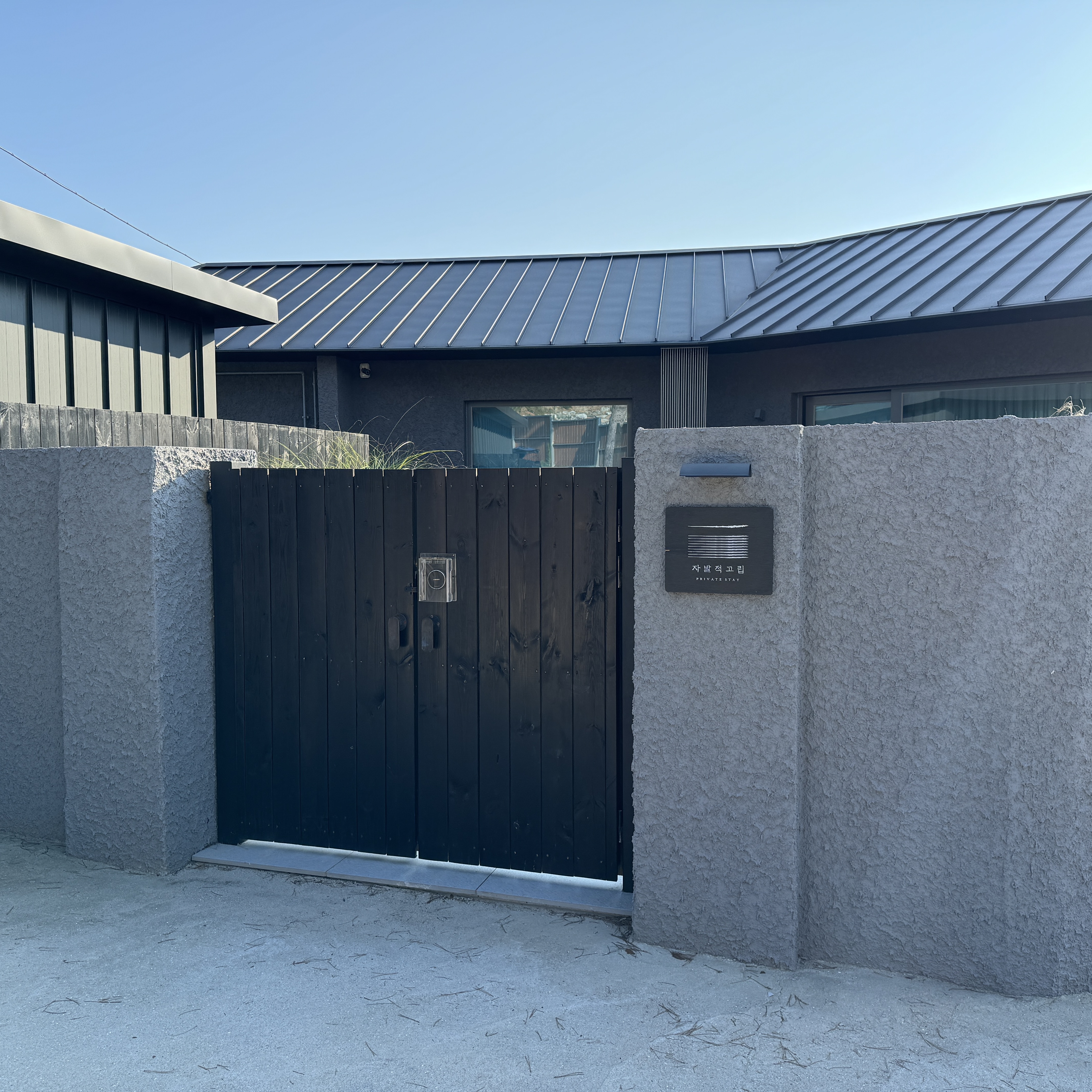 네비의 안내를 따라 시골길을 들어오다 보니 언덕 끝에 자리하고 있더라. 언덕 올라가는데, 언덕 올라가는 첫번째 집에 있는 개가 갑자기 튀어나와 급브레이크를 밟았던. 여기 사람들이 자주 오지 않는 지역인지 나름 반갑다고 뛰어나온 거 같은데 식겁했다. '자발적 고립' 옆에도 고급스런 집 하나 있던데 아마 별장 같더라. 근데 여기 오기가 참 그래. 그래서 여기에 별장 만드는 게 의미가 있을까 싶더라는. 지어놓고 나중에 값이 오를 지역도 아니고 말이지. 입구의 패스워드는 도착 전에 문자로 전송해주더라.