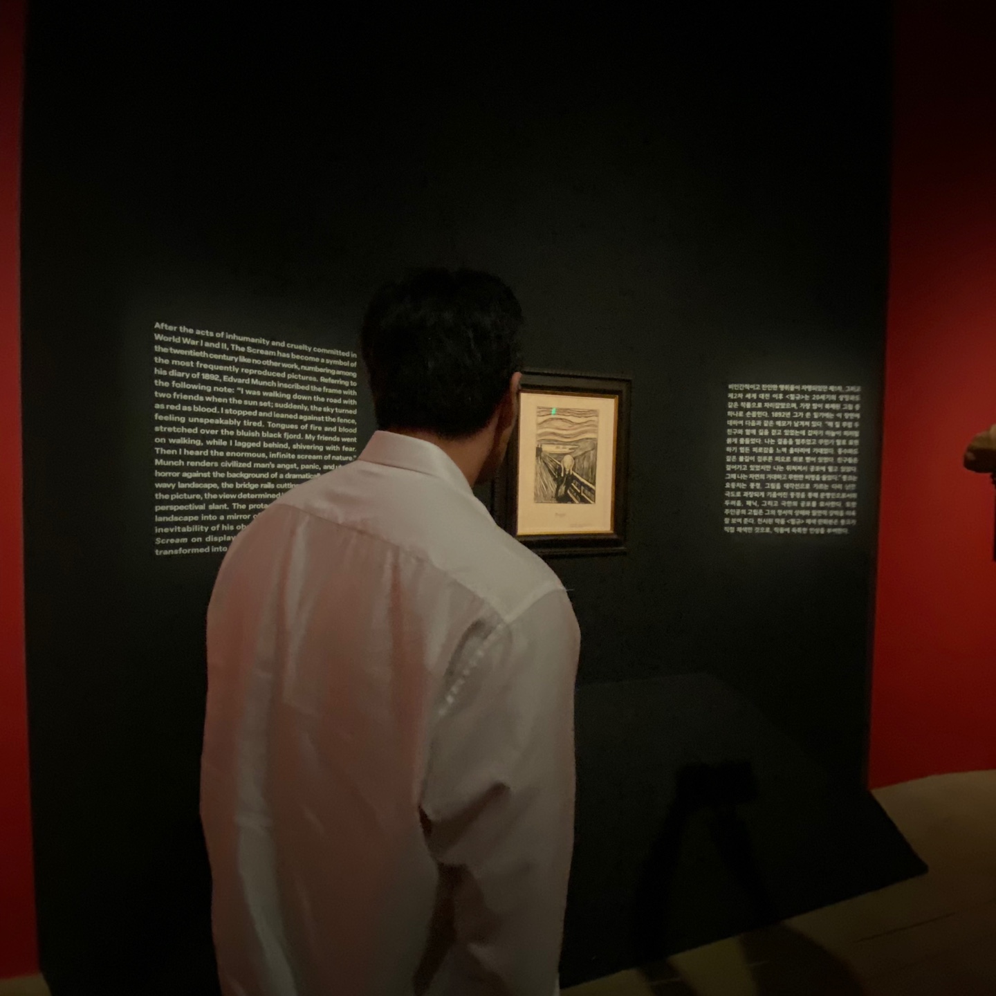 그래도 가장 유명한 작품인 '절규'를 봤지만, 솔직히 감흥은 모르겠다. 아무래도 유명하다 보니 '절규' 주변에는 많은 사람들이 모여서 관람하고 있었는데, 생각보다 작더라. 다른 건 모르겠고, 시기별로 판화가 조금 다르다. 아마 심적인 부분이 작품에도 많이 반영되었거나 본인이 집중하는 게 달라졌던 듯.