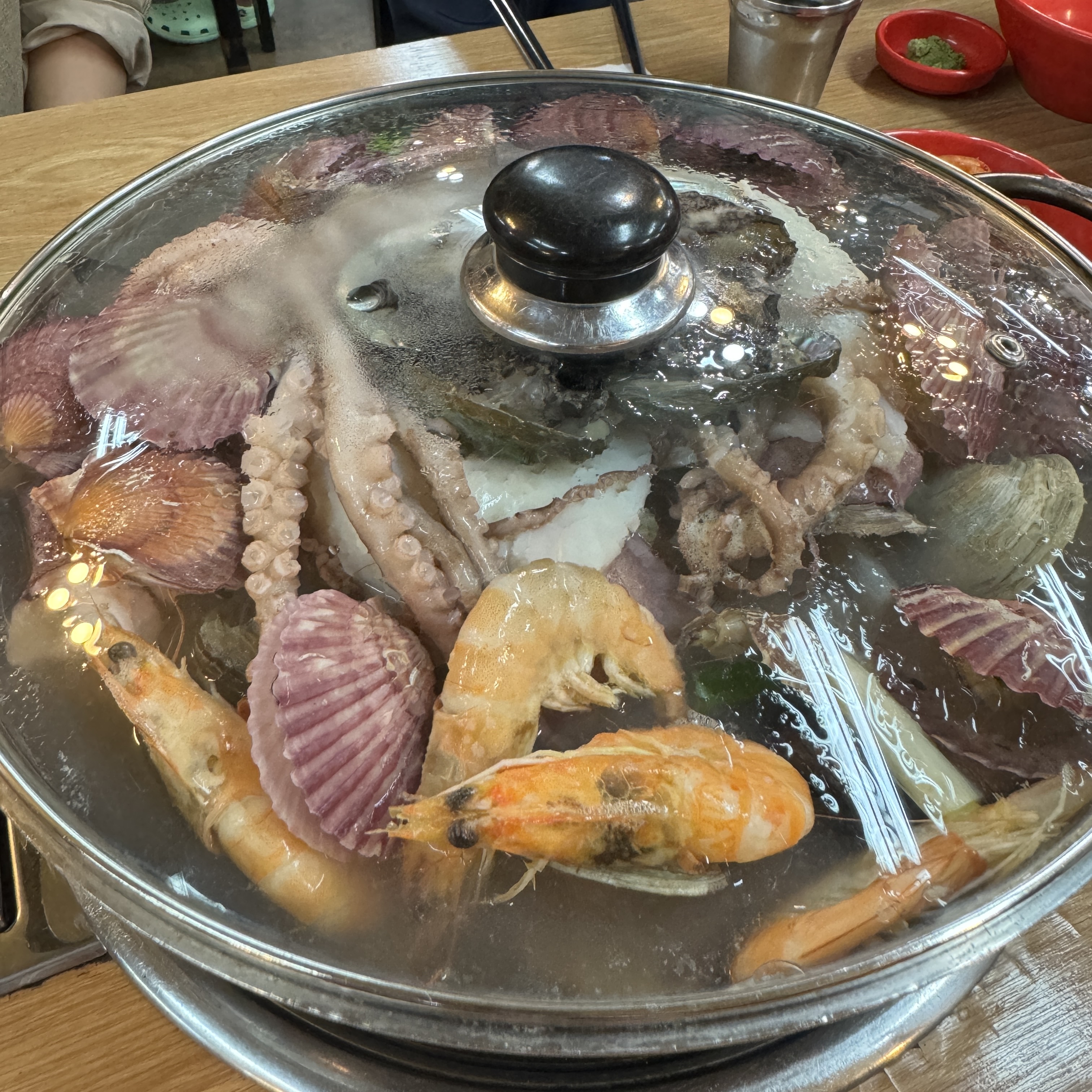 일단 새우, 낙지, 전복, 조개가 푸짐하다. 물론 비싼 전복은 1인 1개씩. 국물은 매운 거랑 맵지 않은 거 중에서 선택 가능한데, 나중에 해물 다 먹고 나서 손칼국수 넣어 먹는데, 손칼국수는 매운 국물이 더 맛있을 듯. 손칼국수에 국물이 배어야 맛나니. 김치는 여기서 한 거 같은데, 손칼국수 전문점에서 나오는 맛있는 김치라 생각하면 될 듯. 그래도 맛나게 배부르게 잘 먹었다. 가끔씩 밥 먹기 싫을 때 이용하면 좋을 듯. 아버지가 쏜다고 오라 했지만 결제는 내가.