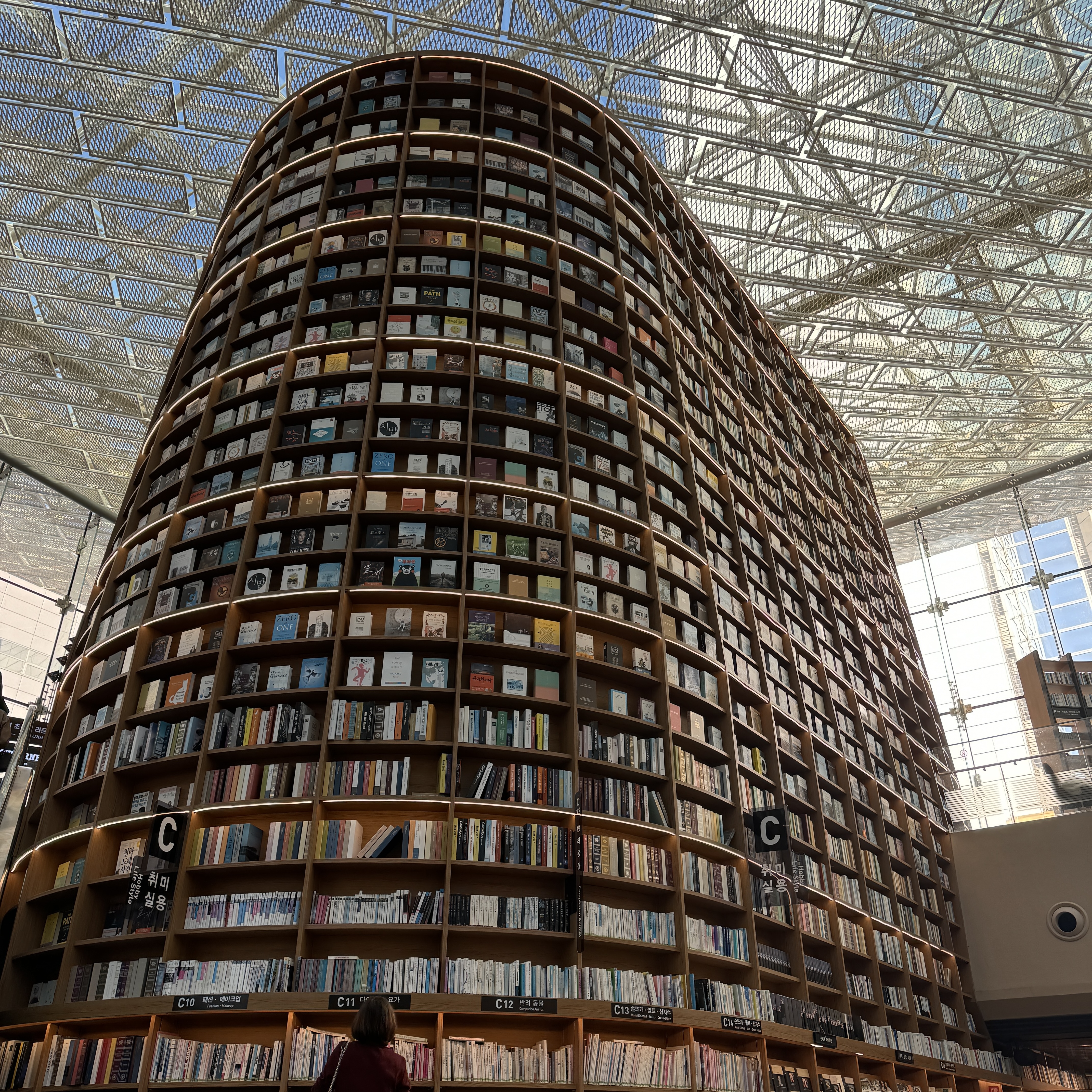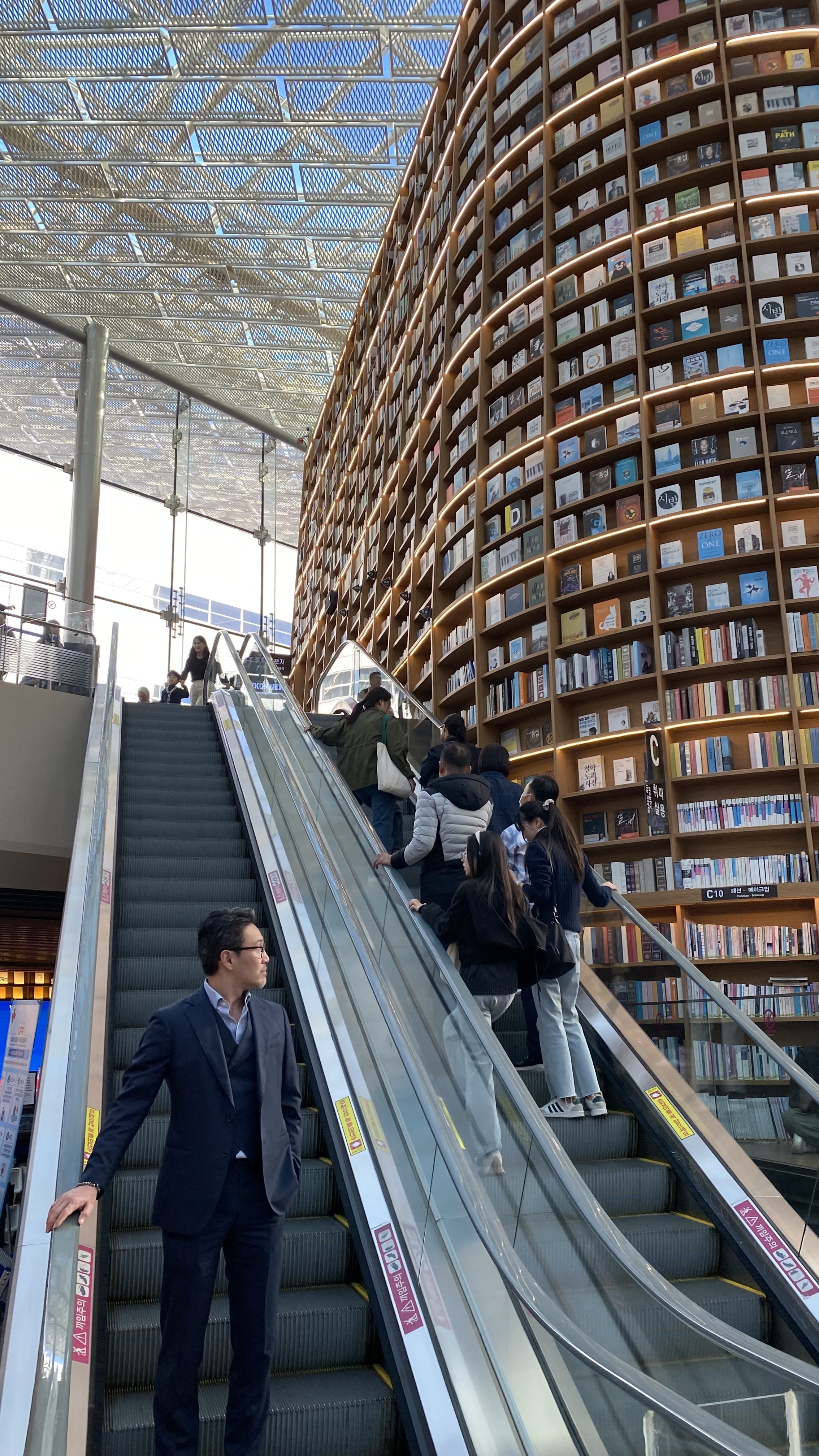 가볼 기회가 없었던 별마당 도서관을 이제서야 가봤네. 책 많더라. 근데 책 분실되면 어쩌려고. 분실되는 경우는 없는지 궁금. 또한 폼으로 꽂아둔 건지 도대체 꺼내어 읽어볼 수 없는 자리에 꽂힌 책도 있고, 잡지와 같은 경우는 그래도 누구나 볼 수 있게 되어 있어서 좋았고. 여기도 외국인들 많더라. 여기가 예전에는 지붕이 뚫려 있는 데가 아니었나 싶은데, 하도 오랜만에 가다 보니 어디가 어딘지 잘 모르겠더라.